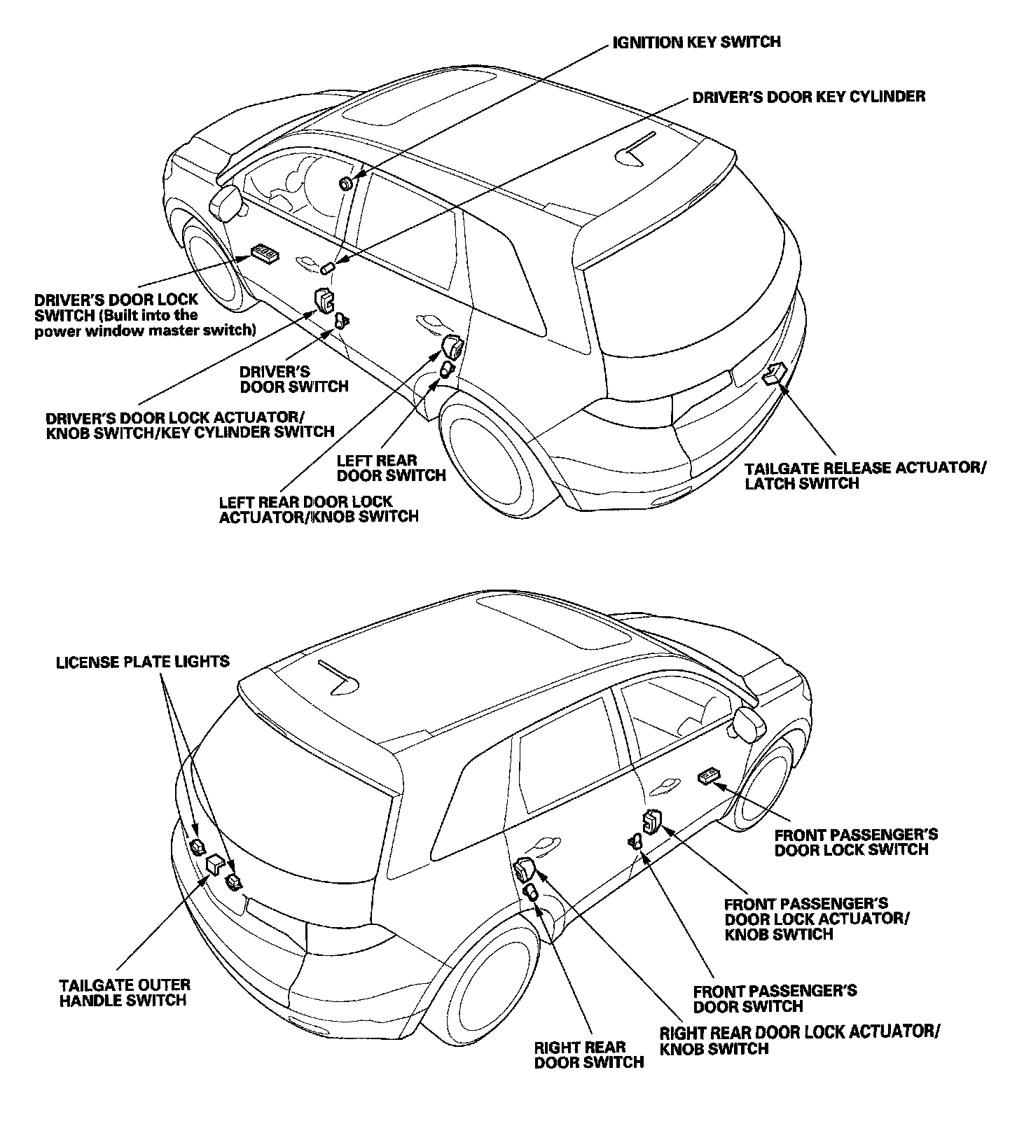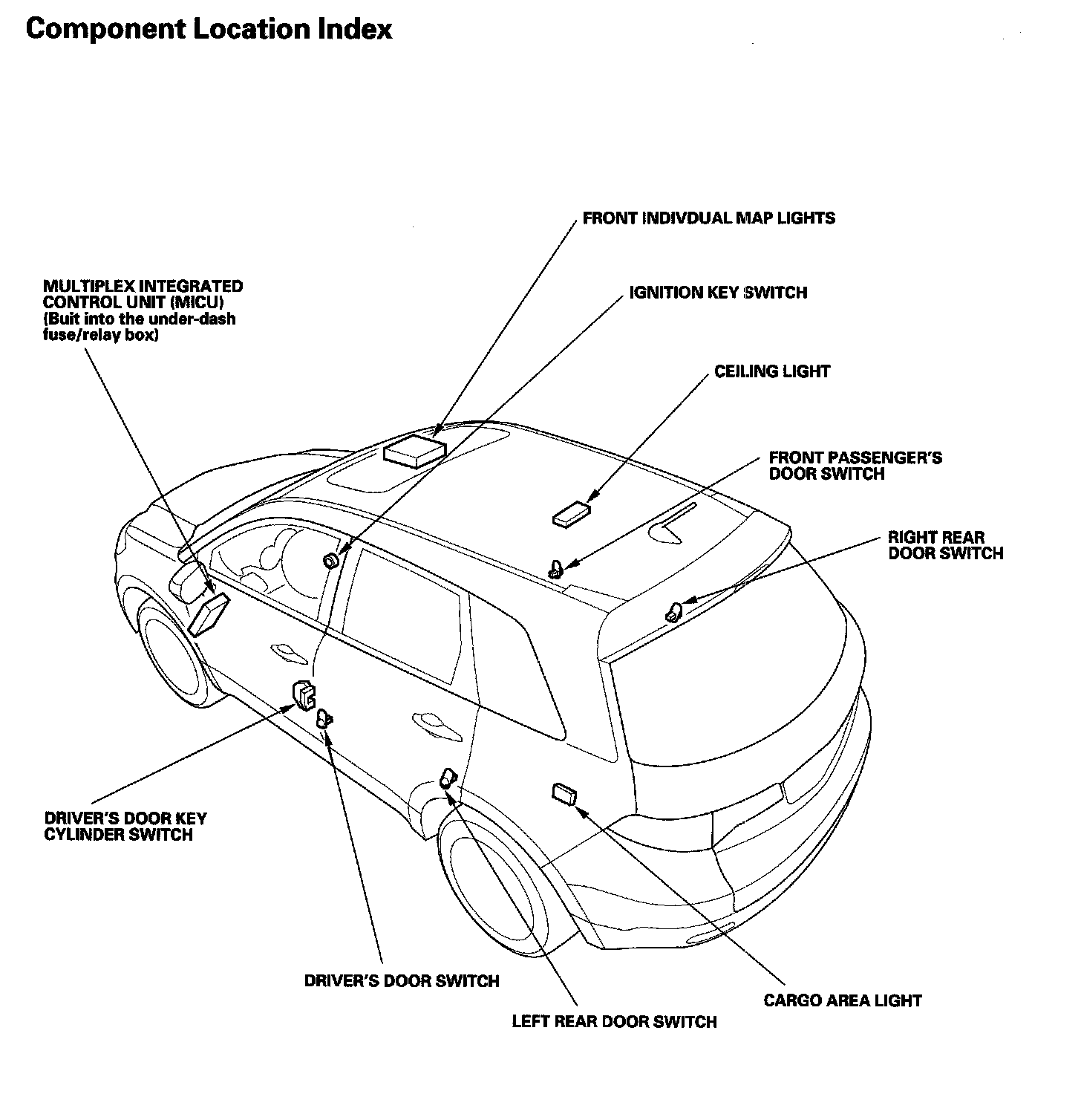 Keyless/Power Door Locks/Security System Component Location Index: