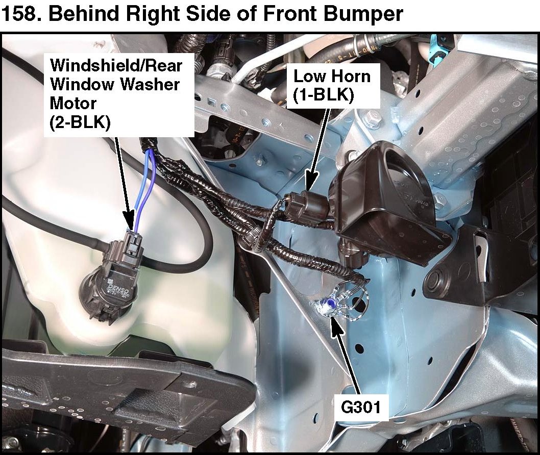 158. Behind Right Side Of Front Bumper: