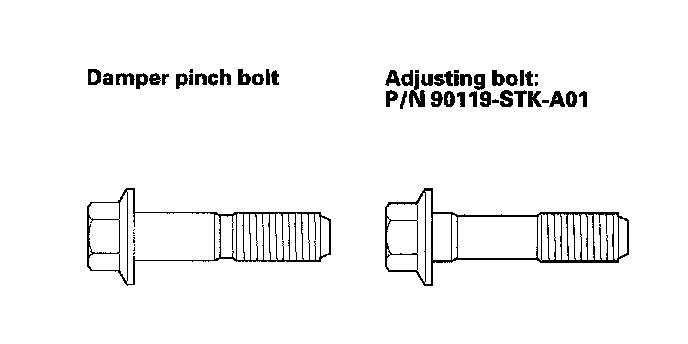 ^ The camber angle can be adjusted up to 50' by replacing both damper pinch bolts with the adjusting bolts.