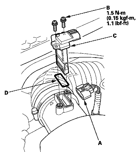 3. Remove the MAF sensor/IAT sensor 1 (C).