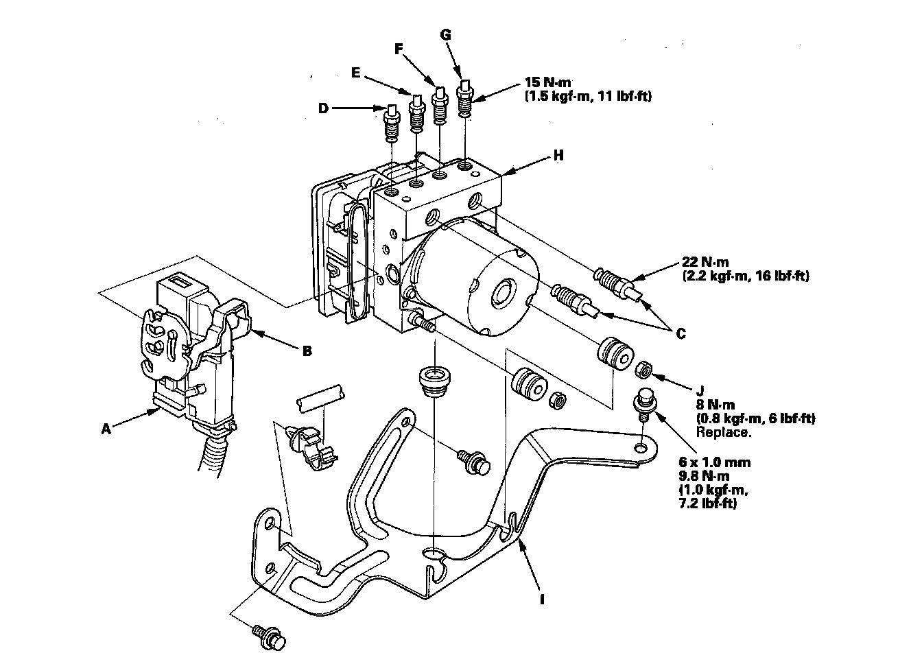 5. Remove the locknuts (J) then remove the VSA modulator-control unit from the bracket.