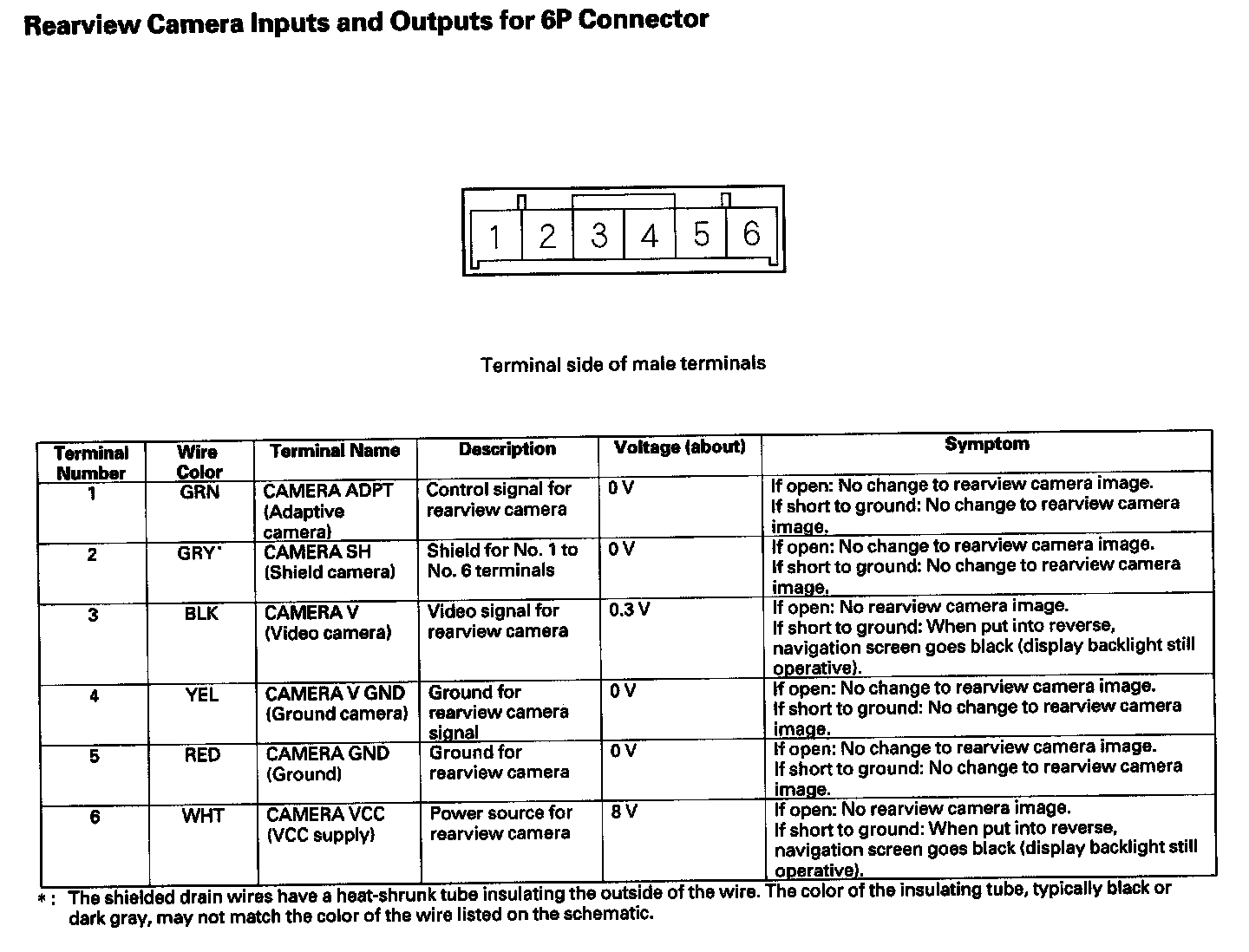 Rearview Camera Inputs And Outputs For 6P Connector: