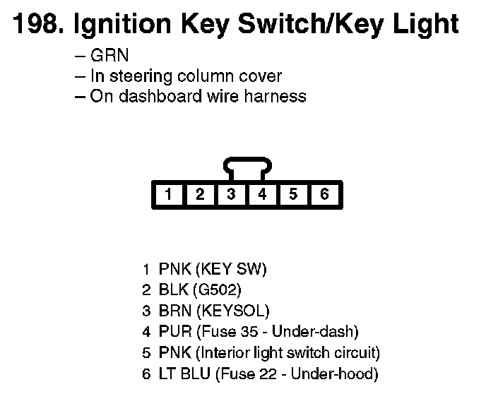 198. Ignition Key Switch/Key Light: