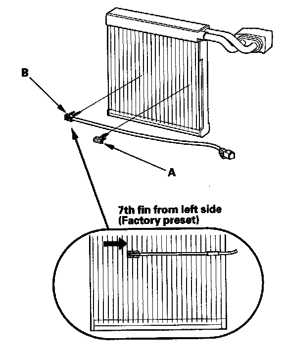 NOTE: The evaporator temperature sensor is installed in the fin at the 7th fin from the left side by the factory preset.