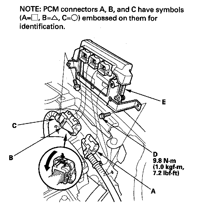 10. Disconnect PCM connectors A, B, and C.