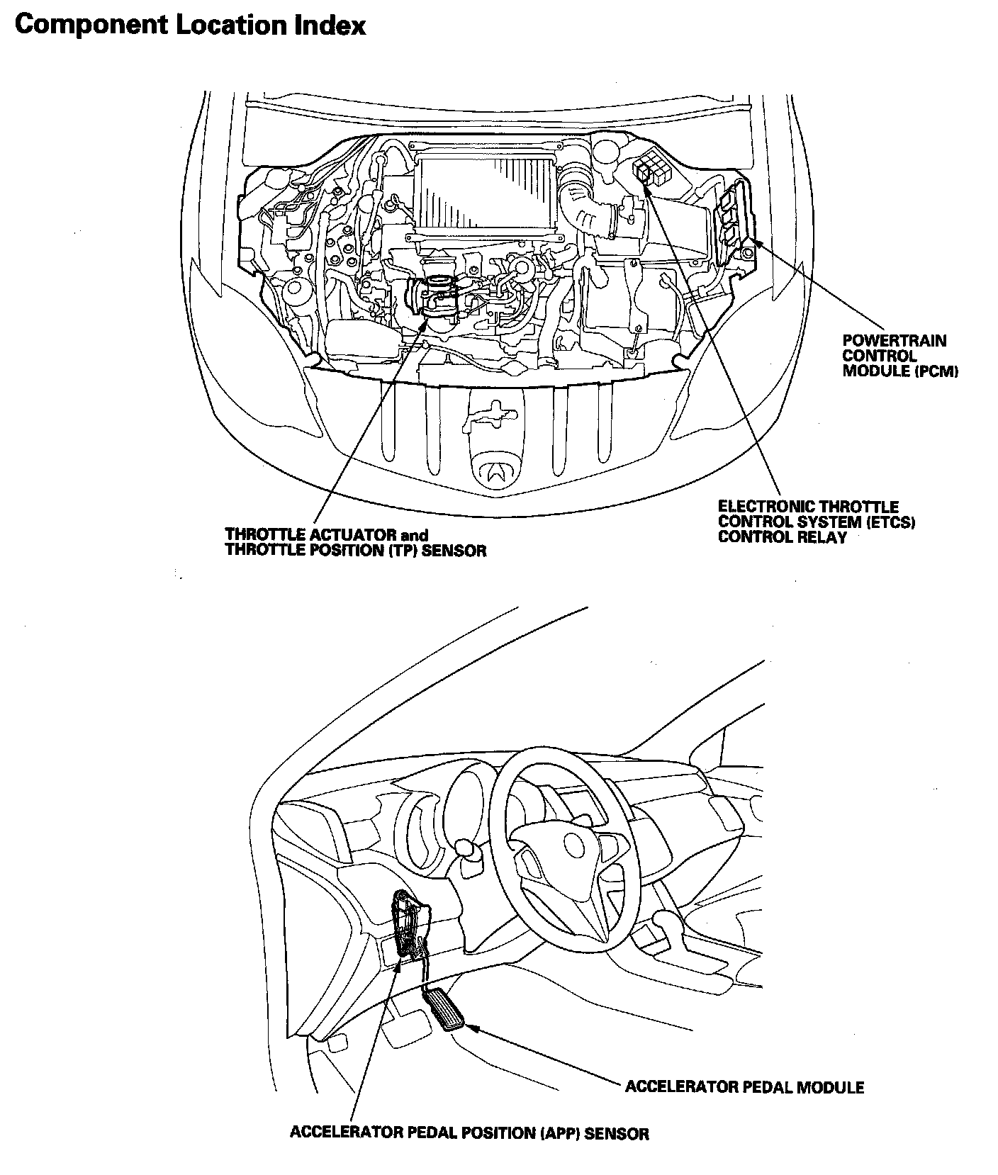 Electronic Throttle Control System Component Locaton Index: