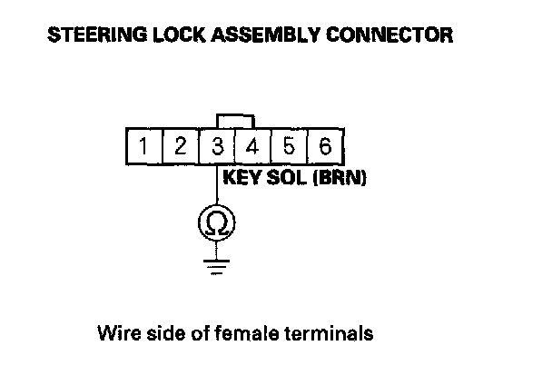 6. Check for continuity between the steering lock assembly connector terminal No. 3 and body ground.