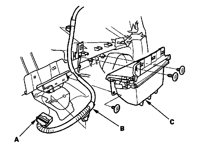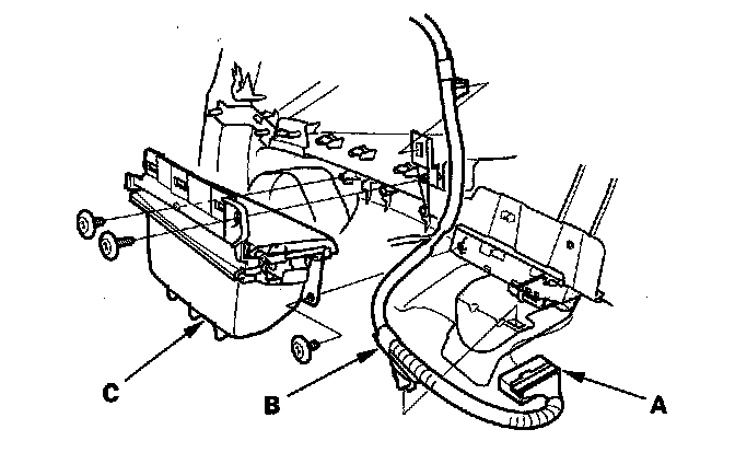4. Remove the three screws from the door panel, then pull up on the door pocket (C) to release the clips.