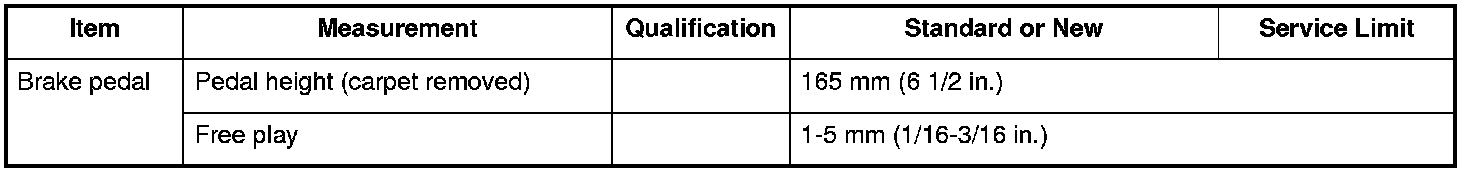 Brake Pedal Specifications