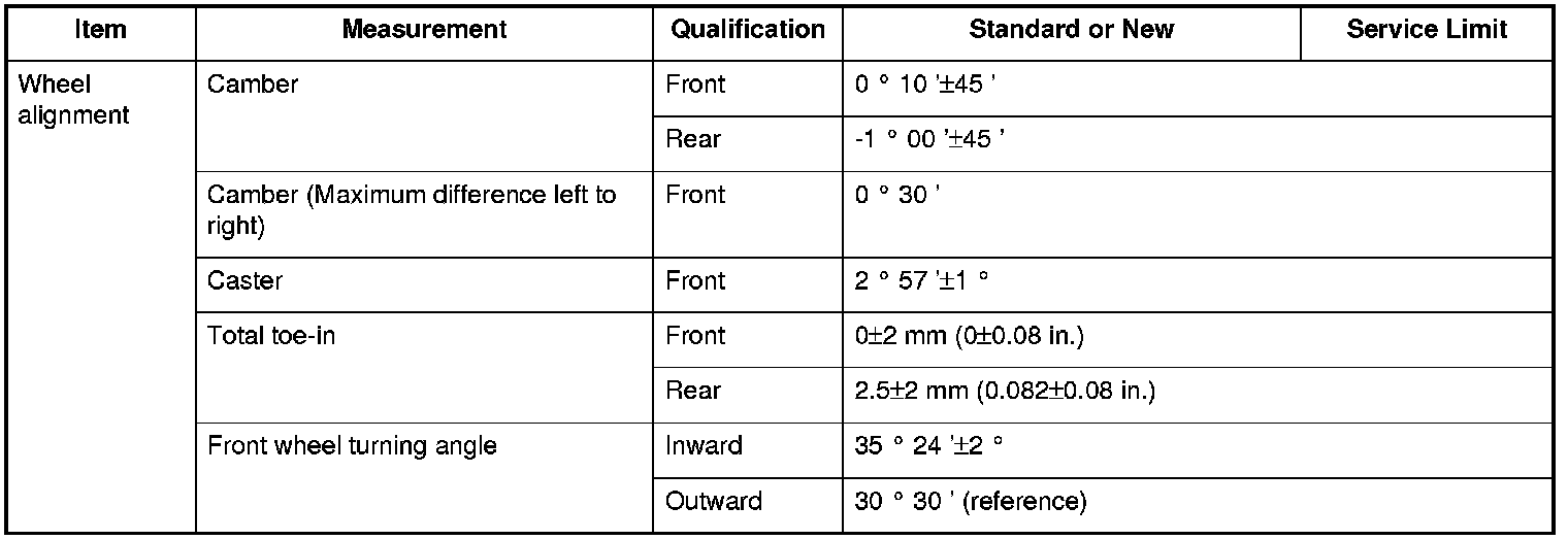 Wheel alignment Specifications