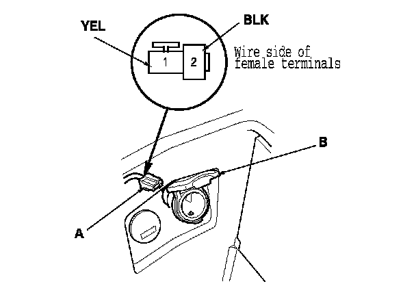 2. Disconnect the 2P connector (A) from the console accessory power socket (B).