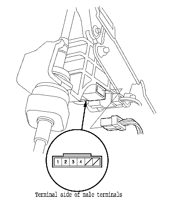 8. Shift out of P, and check for continuity between the connector terminals No. 1 and No. 2. There should be continuity.