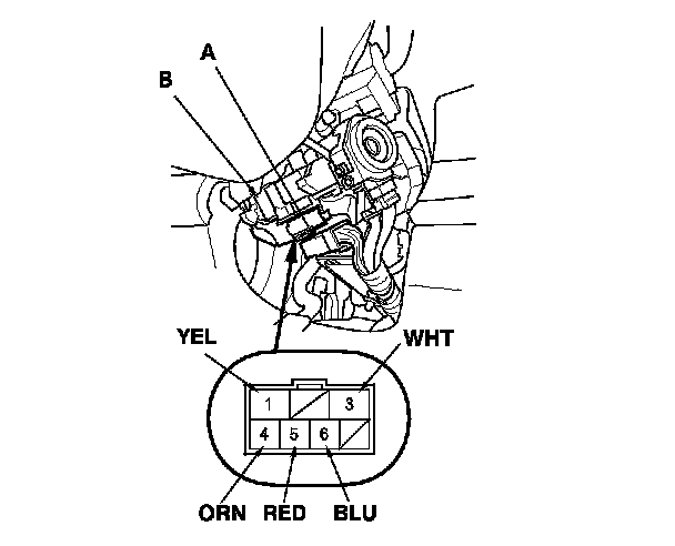 3. Disconnect the 7P connector (A) from the ignition switch (B).