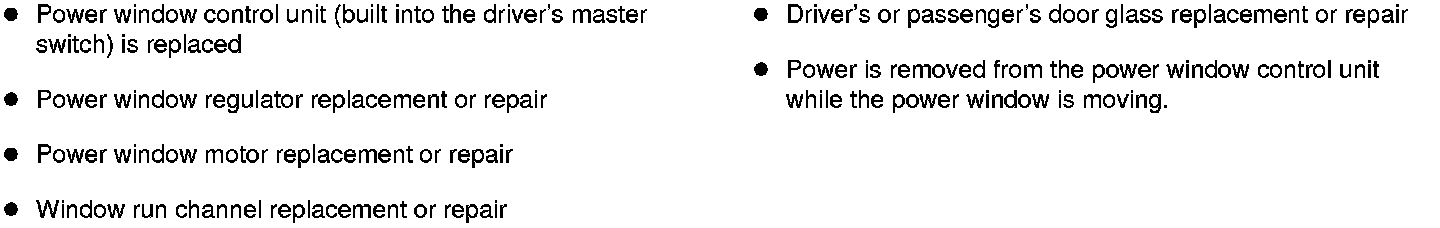Resetting the driver's or passenger's power windows is required when any of the following have occurred: