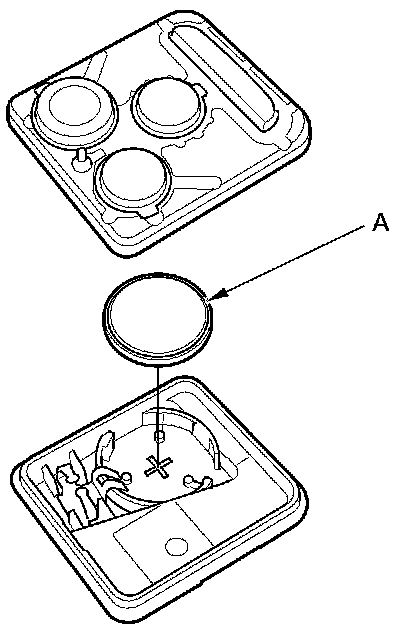 4. Replace the transmitter battery (A) with a new one, and try to lock and unlock the doors with the transmitter by pressing the lock or unlock button at least 10 times.