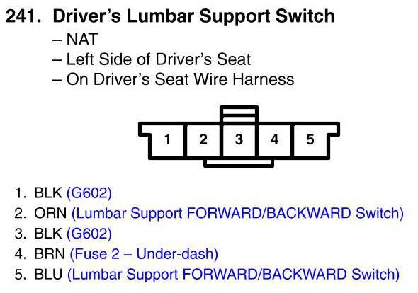 View 241 - Driver's Lumbar Support Switch Connector View