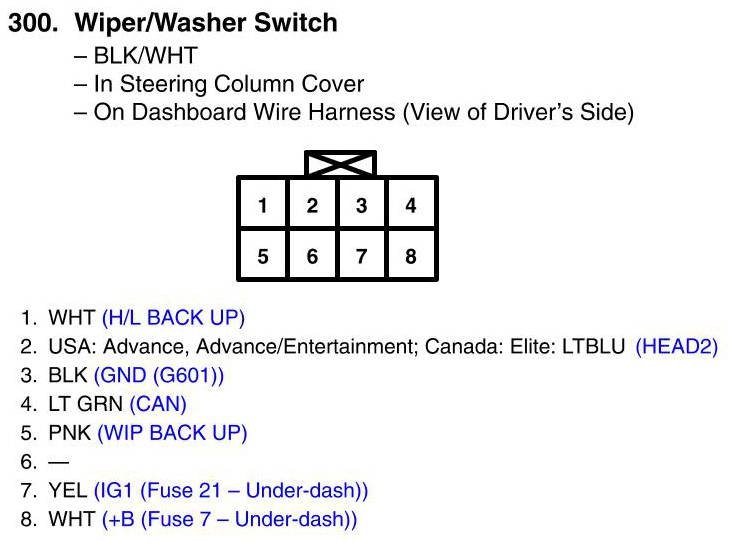 View 300 - Wiper/Washer Switch Connector View