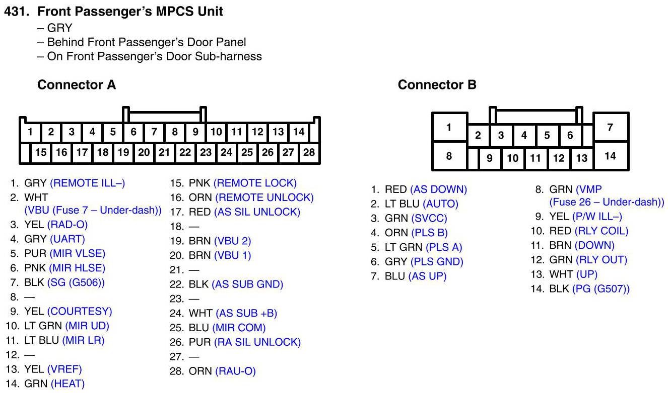 View 431 - Front Passenger's MPCS Unit Connector View