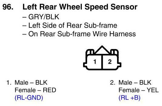 View 96 - Left Rear Wheel Speed Sensor Connector View