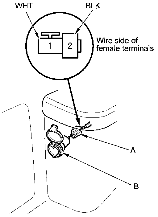 2. Disconnect the 2P connector (A) from the cargo area accessory power socket (B).