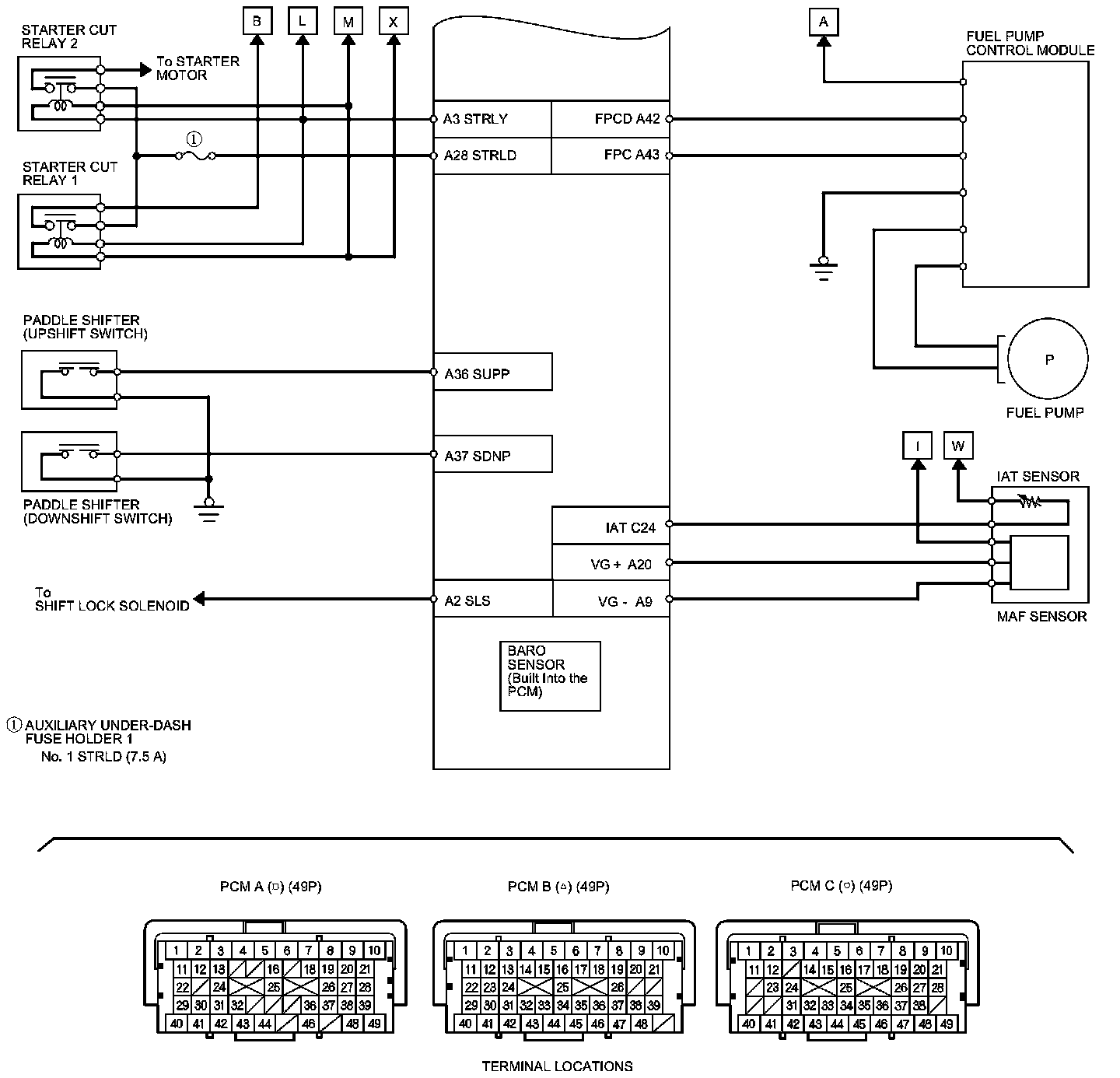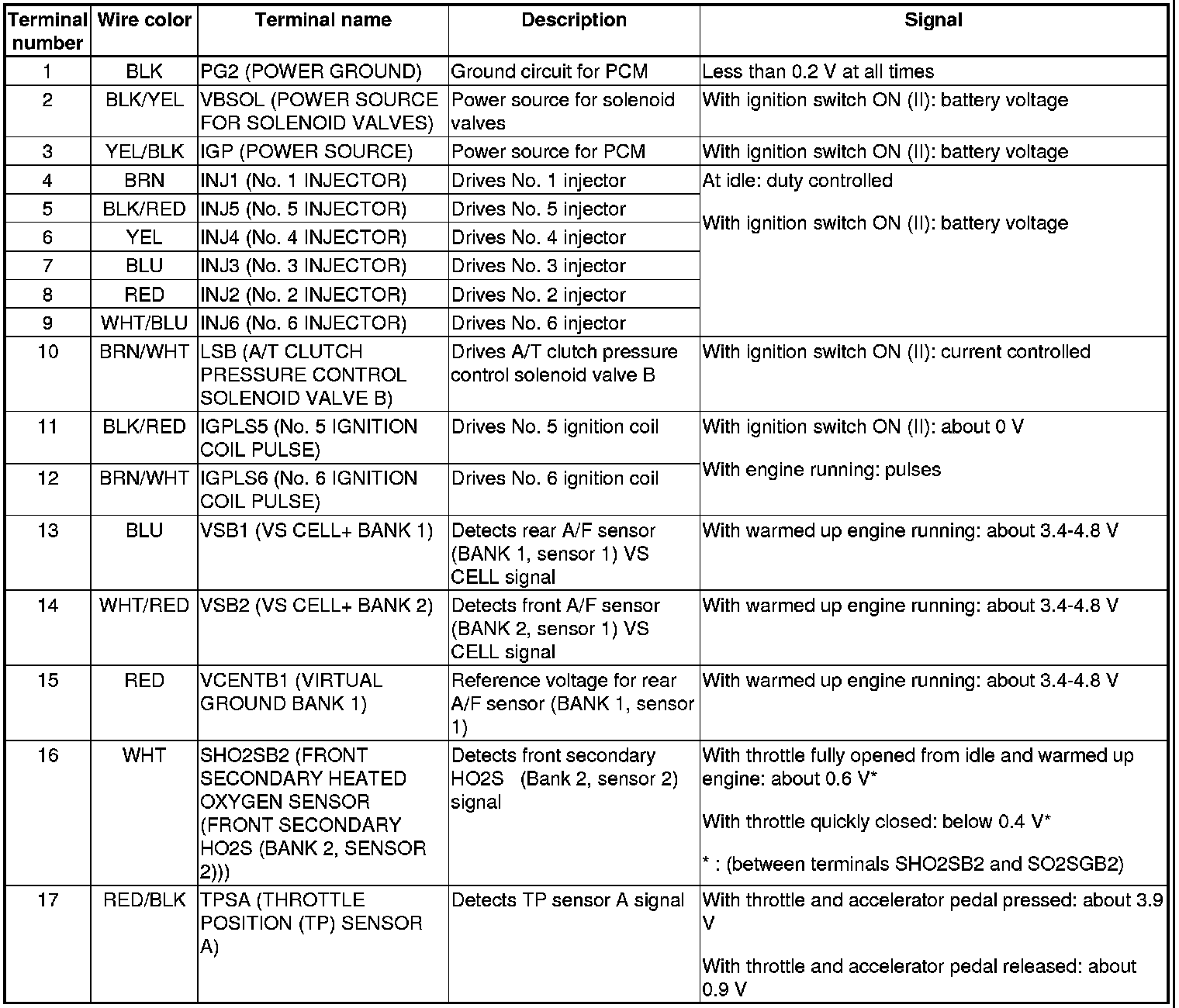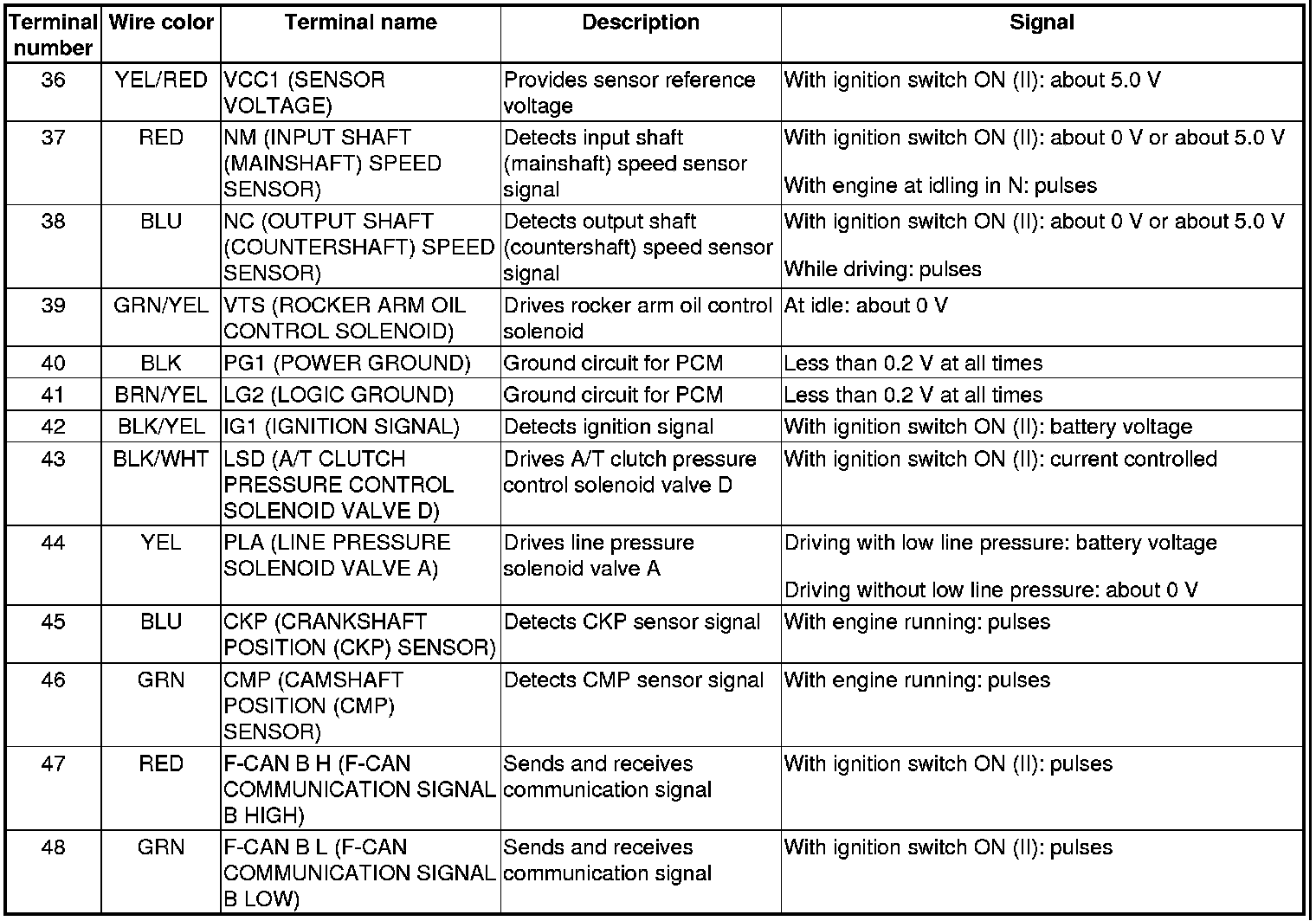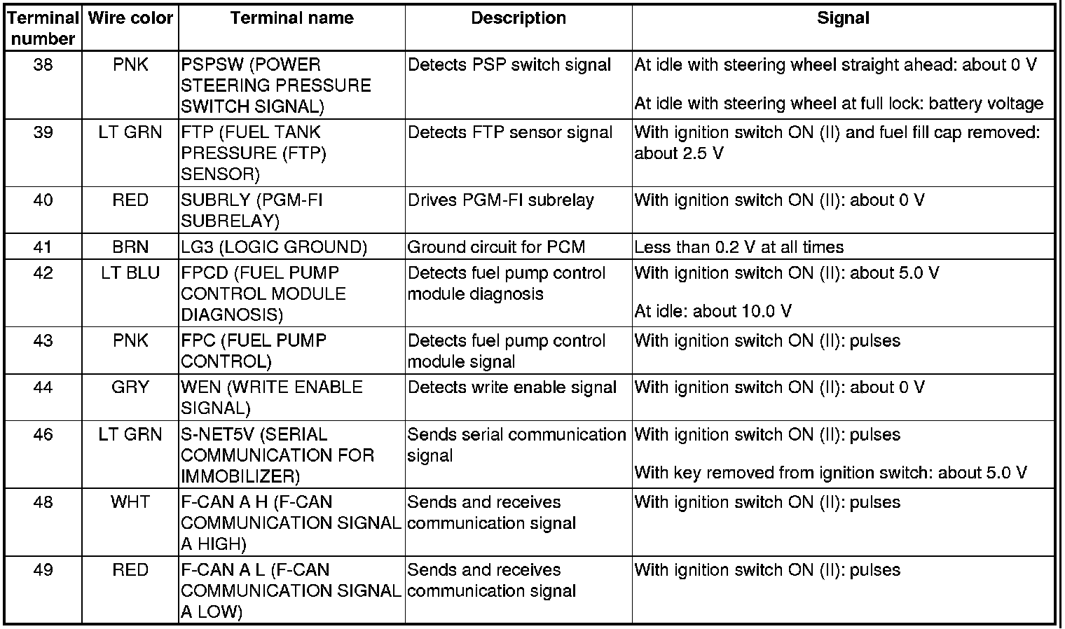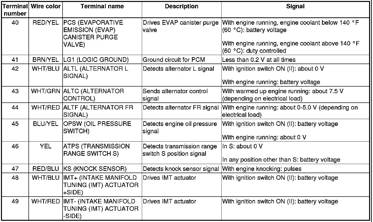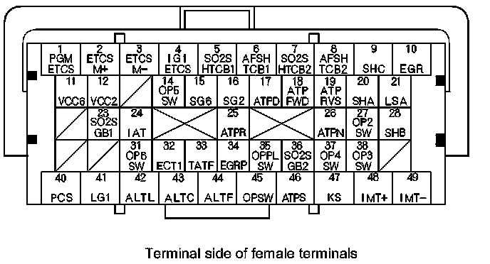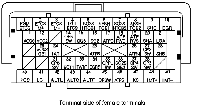 PCM Inputs and Outputs at PCM Connector A (square) (49P)