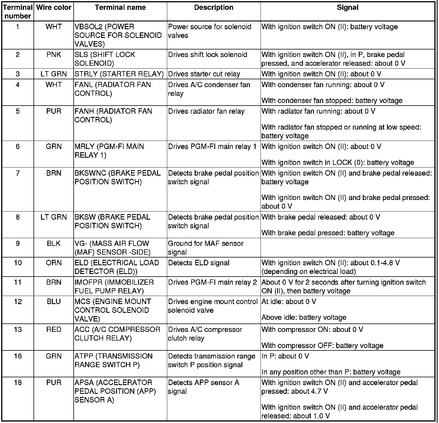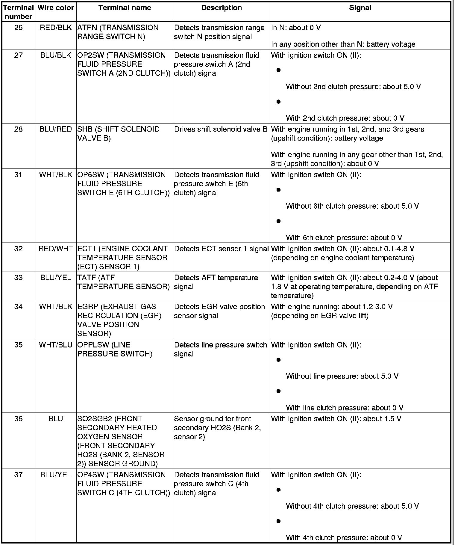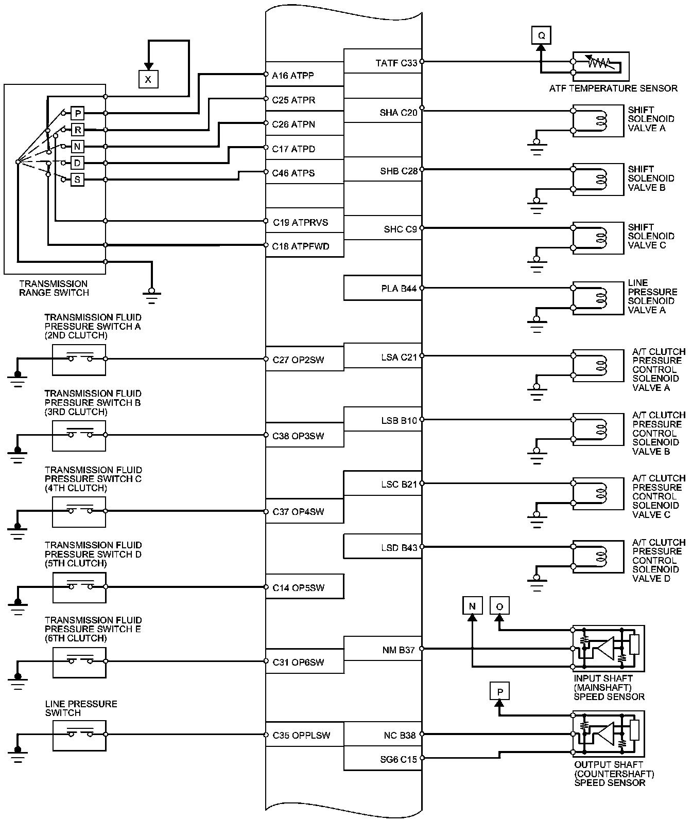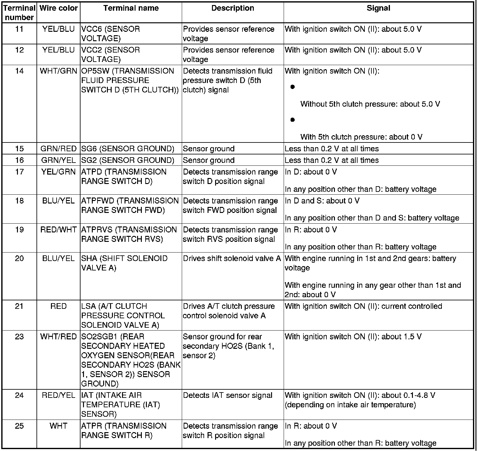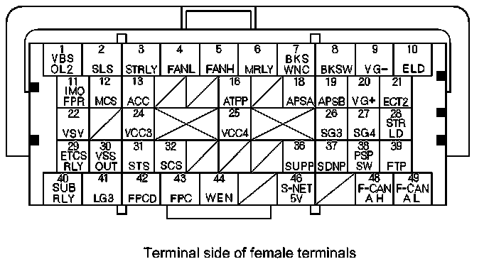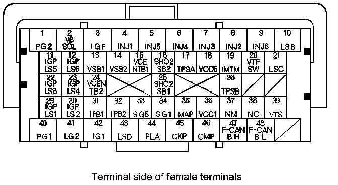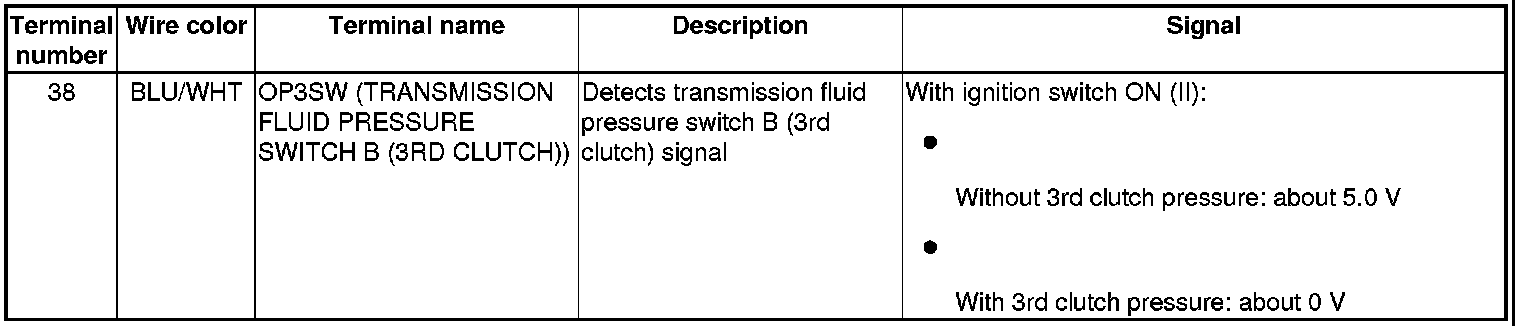 PCM Inputs and Outputs at PCM Connector A (square) (49P)