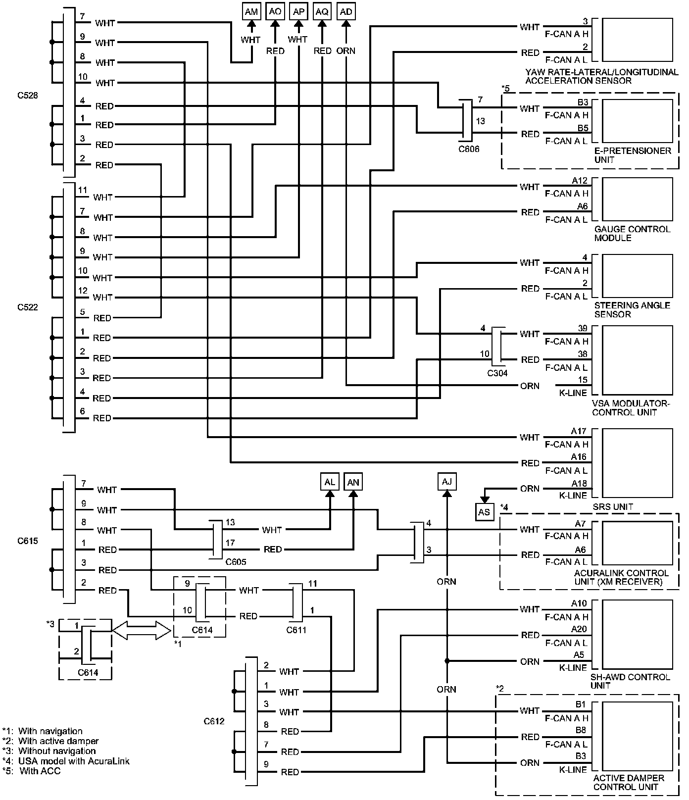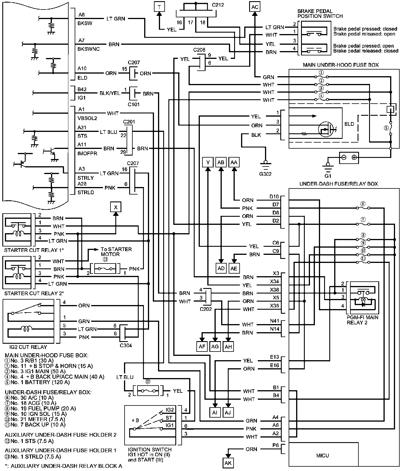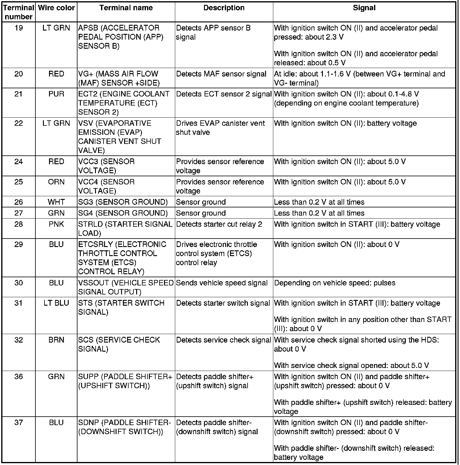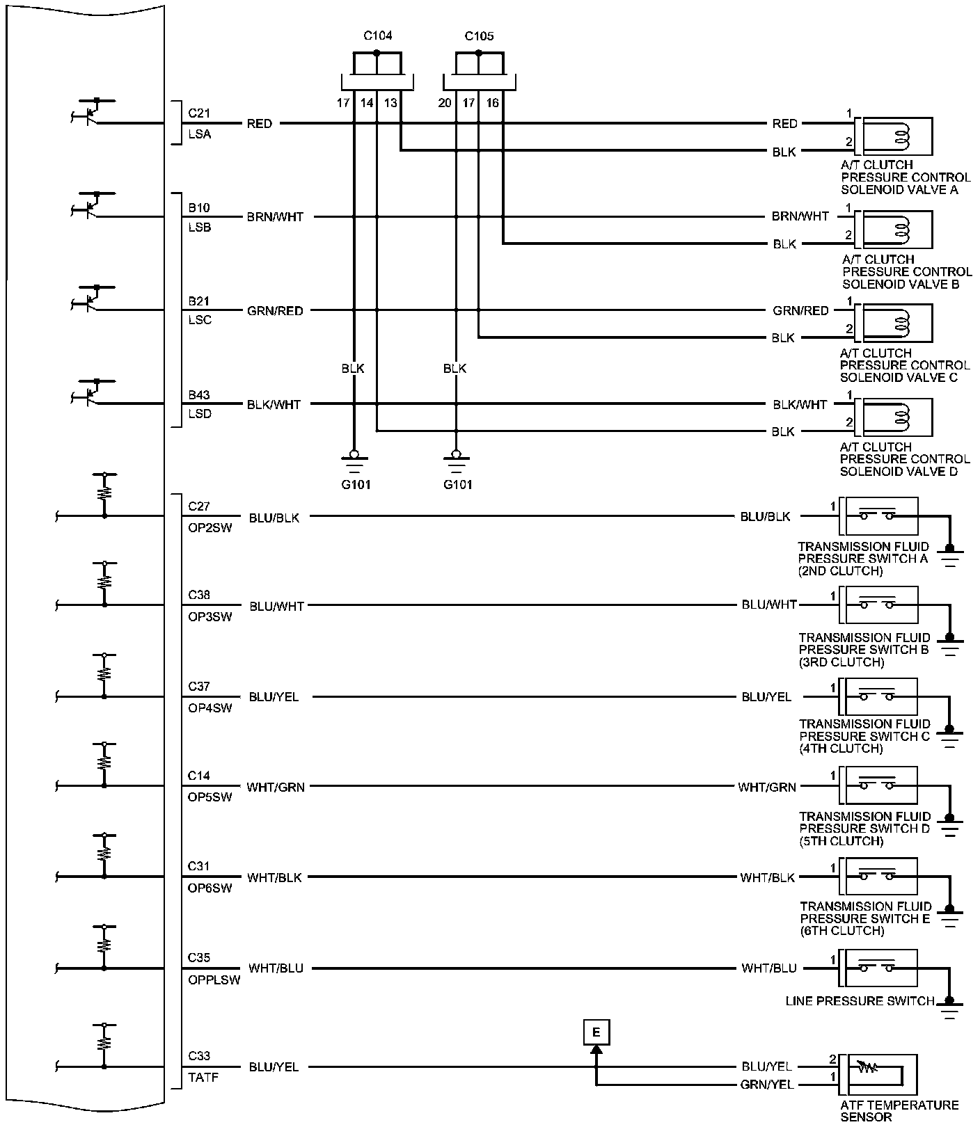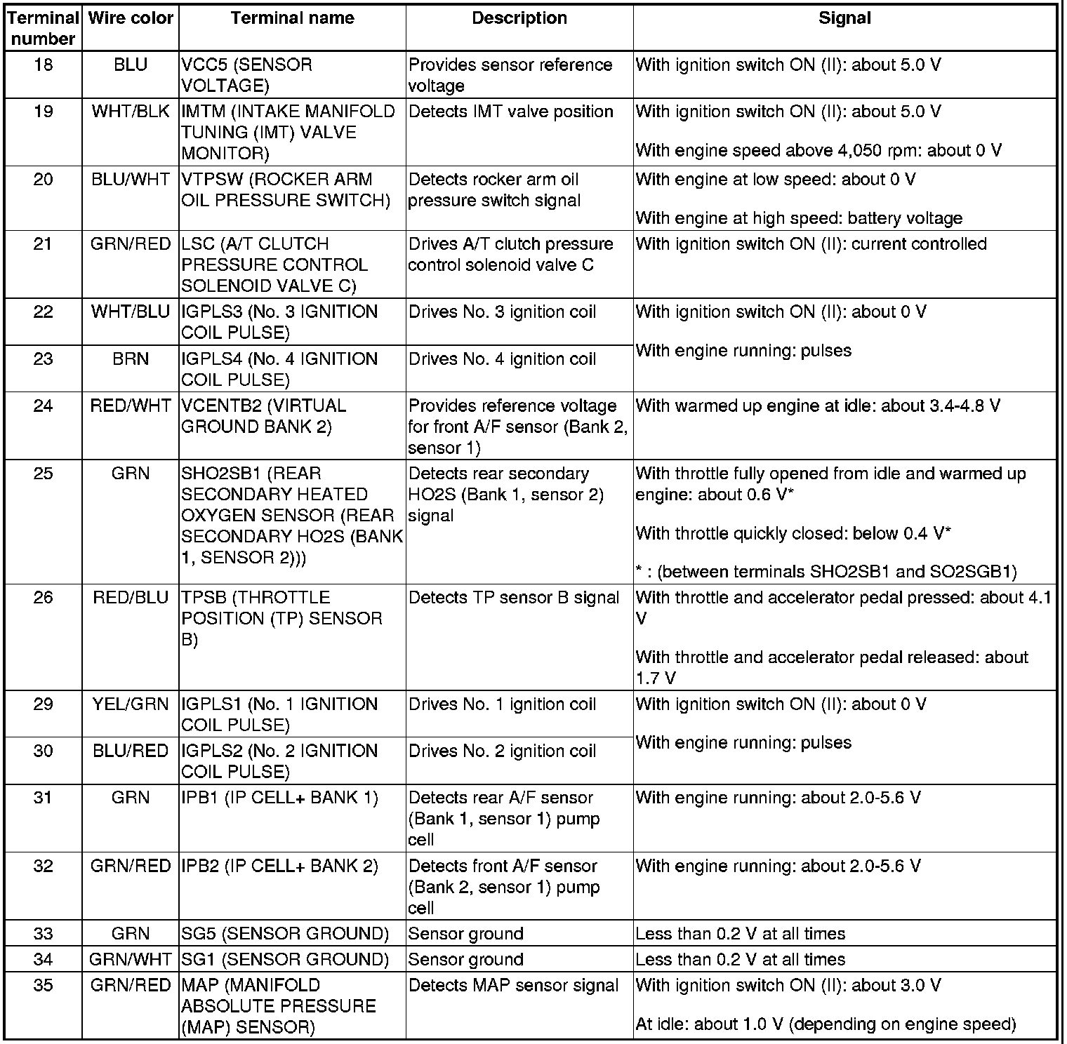 PCM Inputs and Outputs at PCM Connector A (square) (49P)