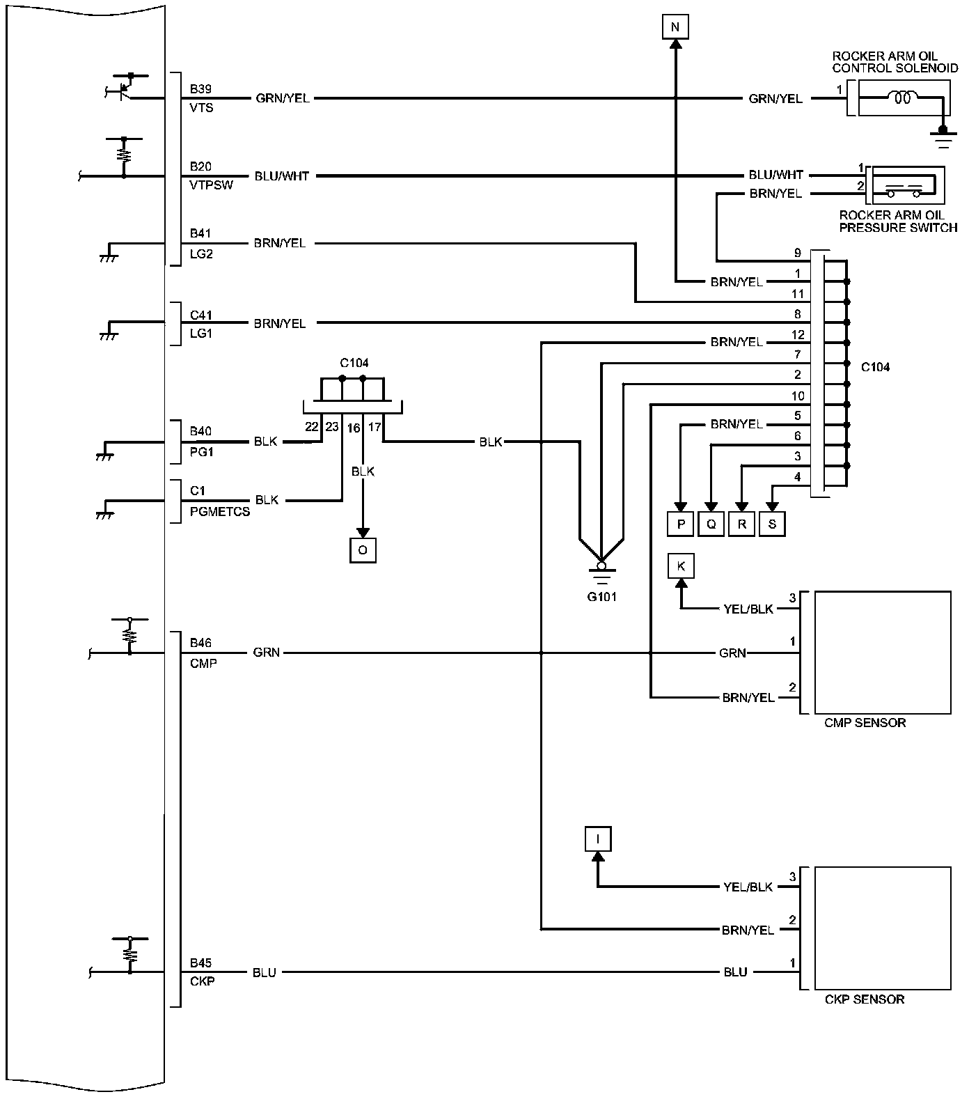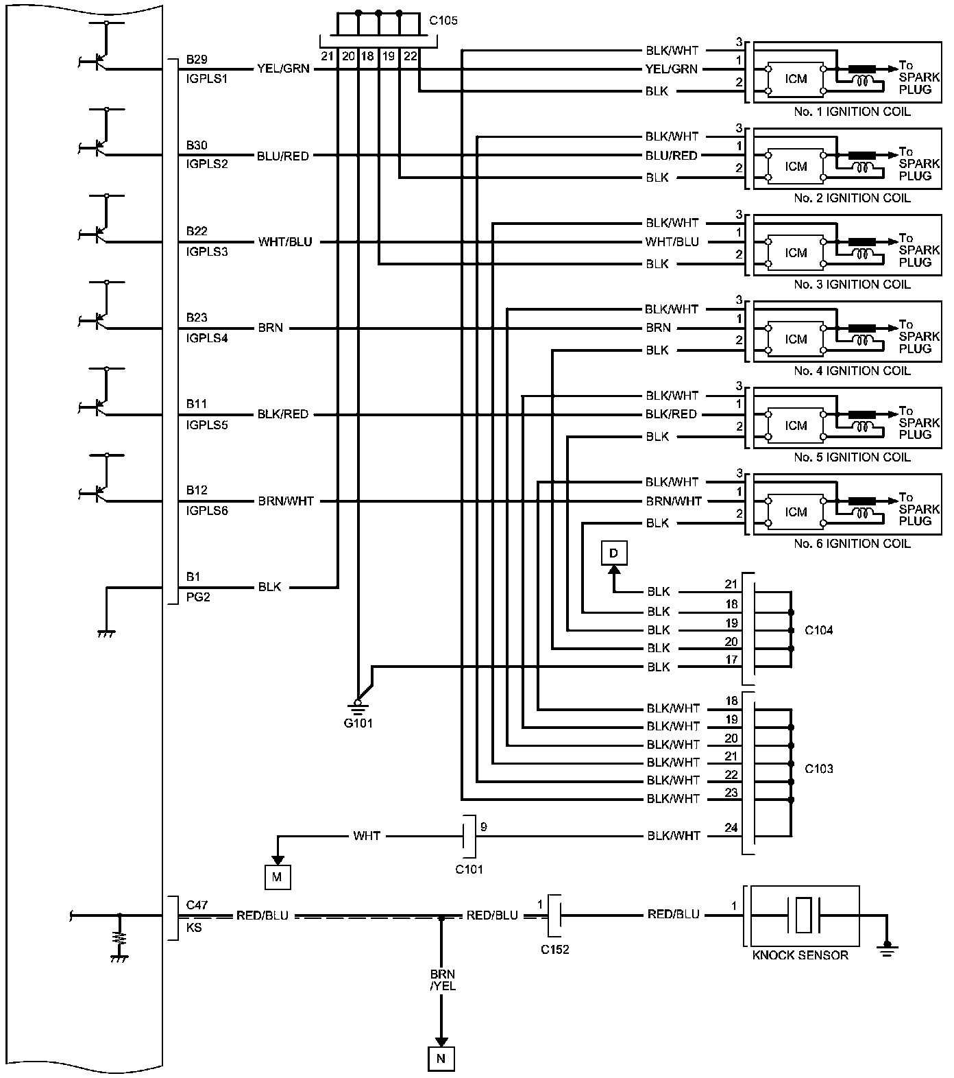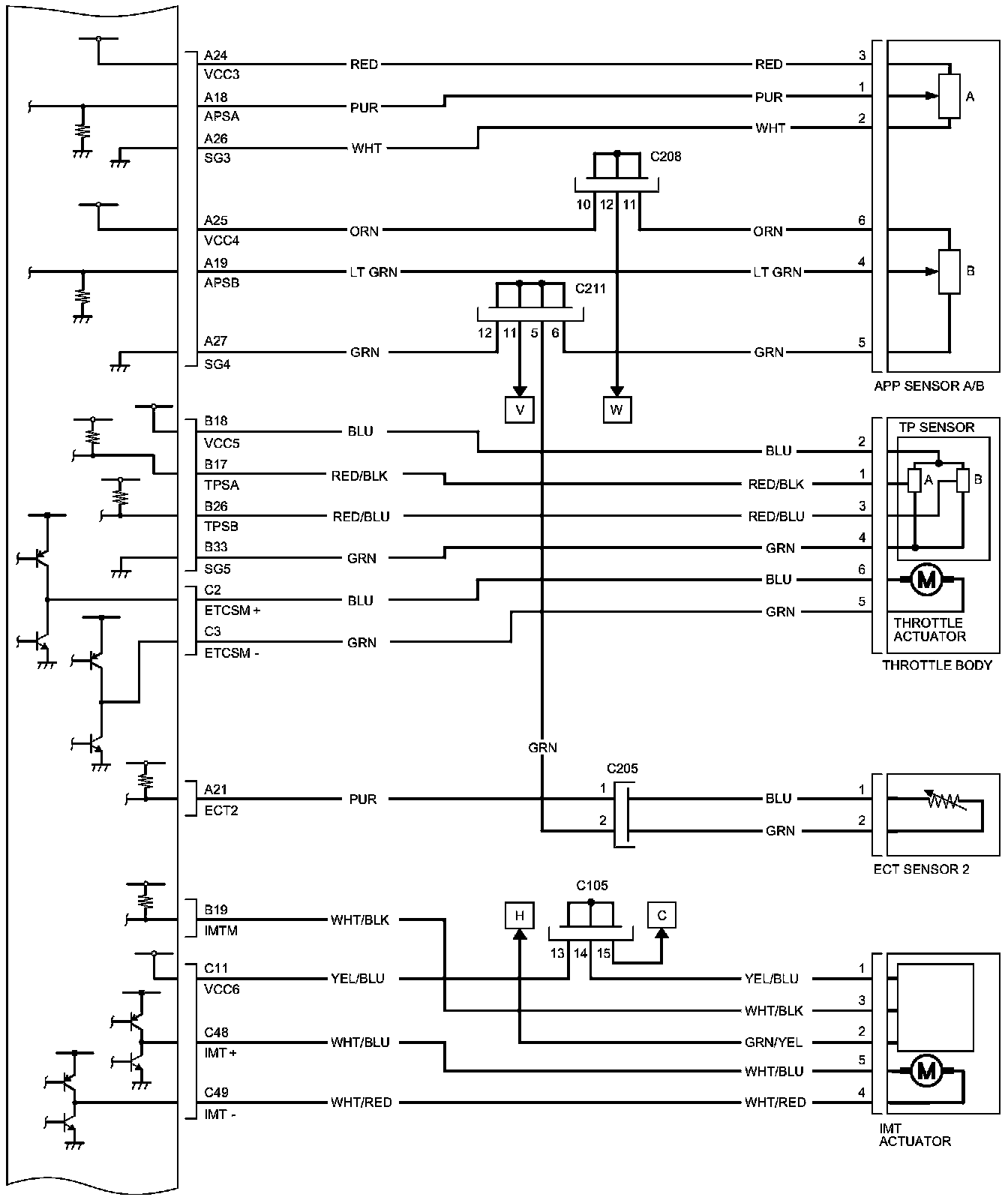 PCM Inputs and Outputs at PCM Connector C (circle) (49P)