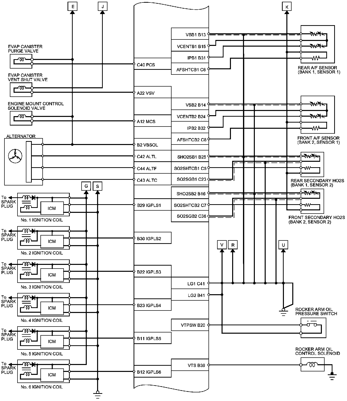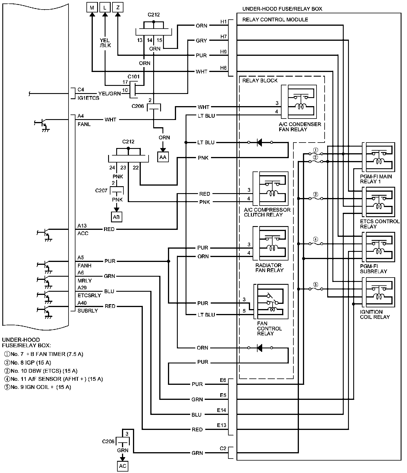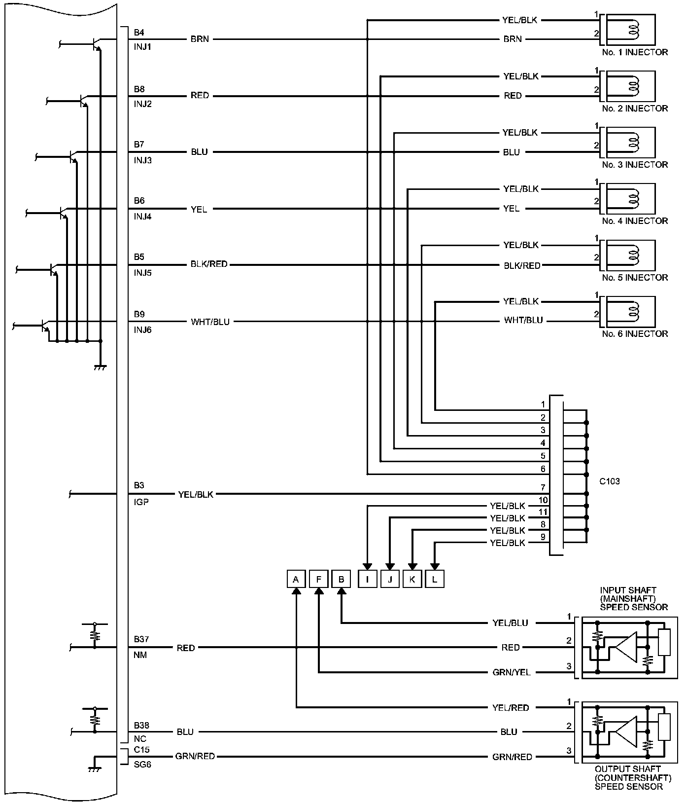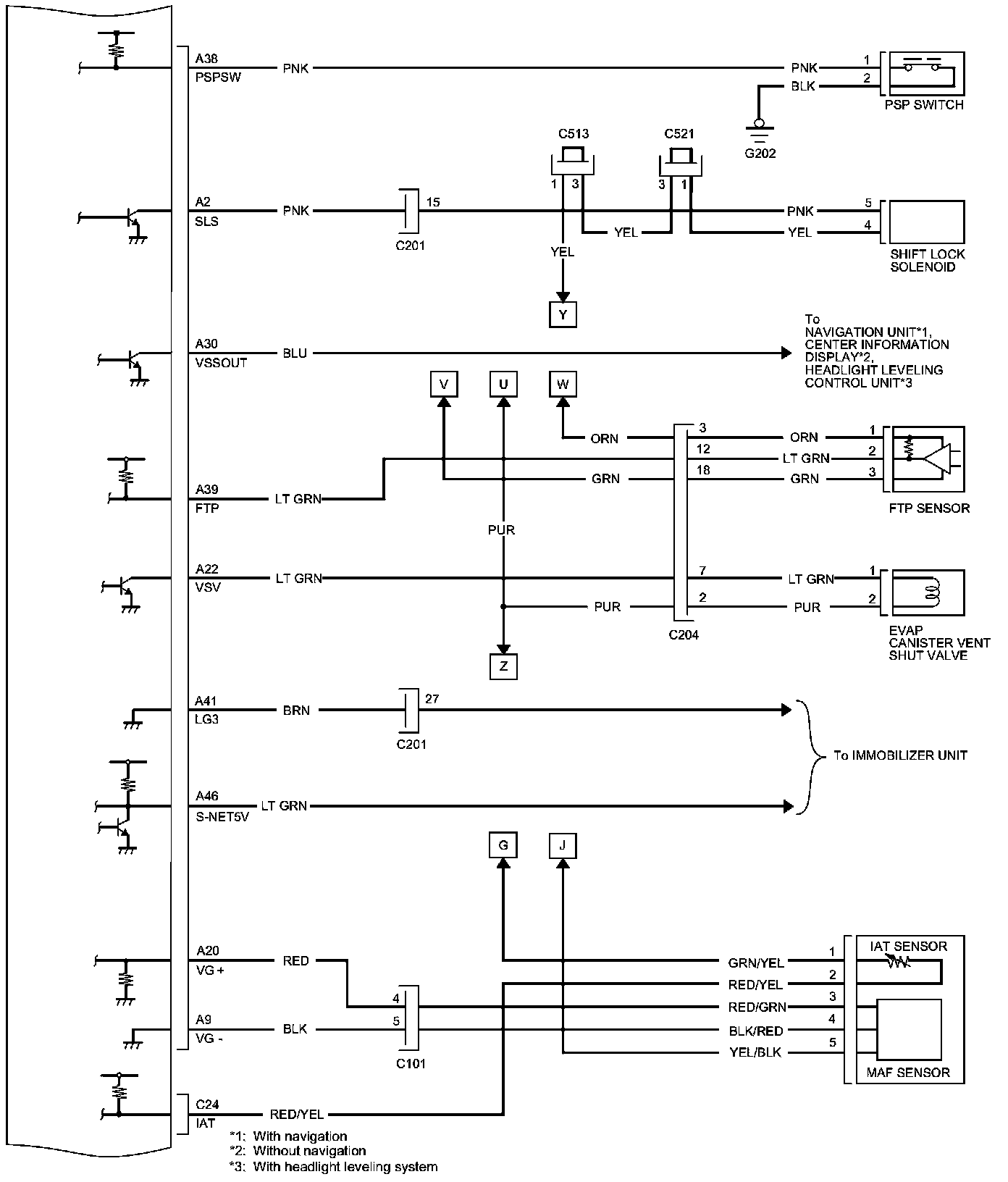 PCM Inputs and Outputs at PCM Connector C (circle) (49P)