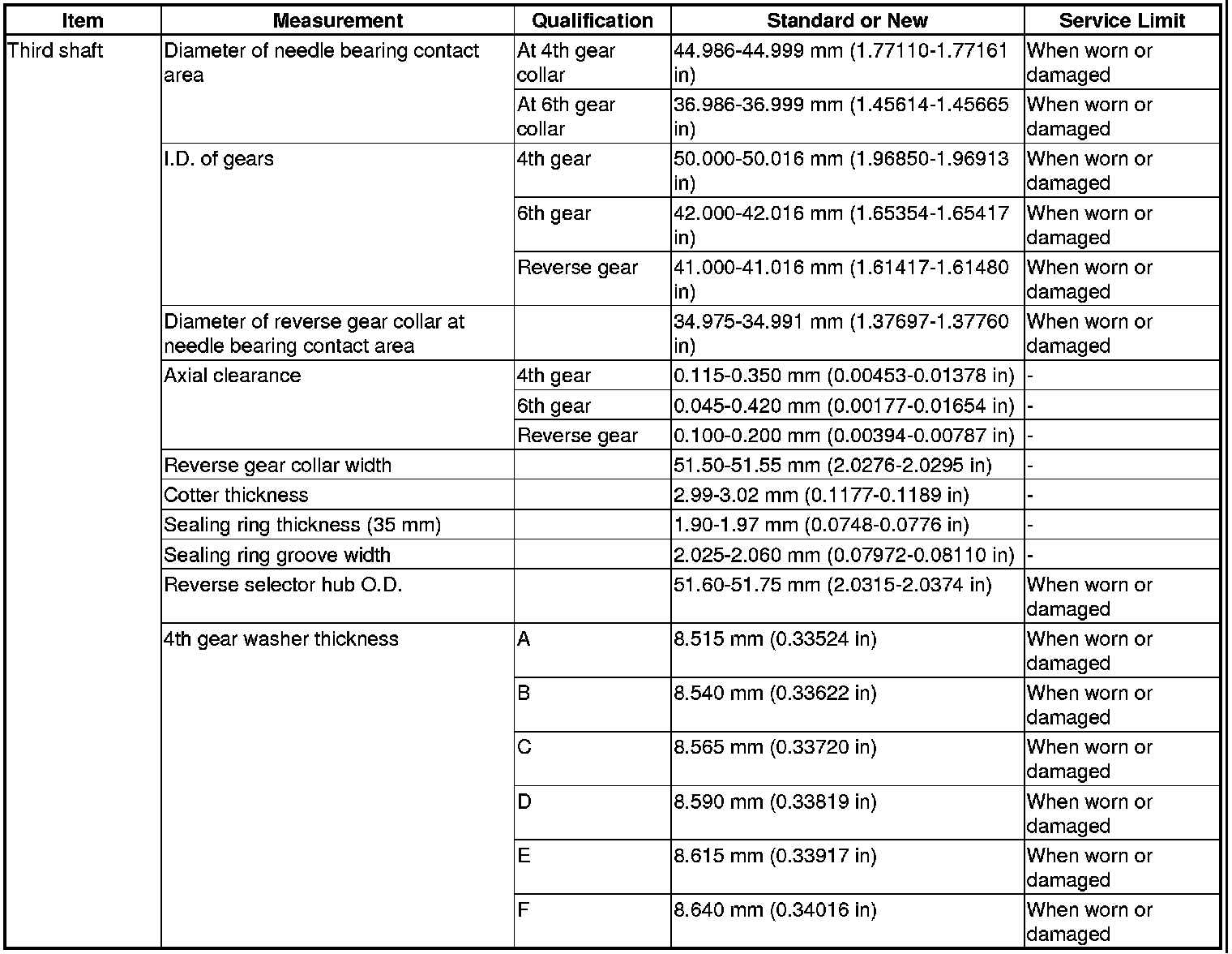 Third Shaft Specification(s)