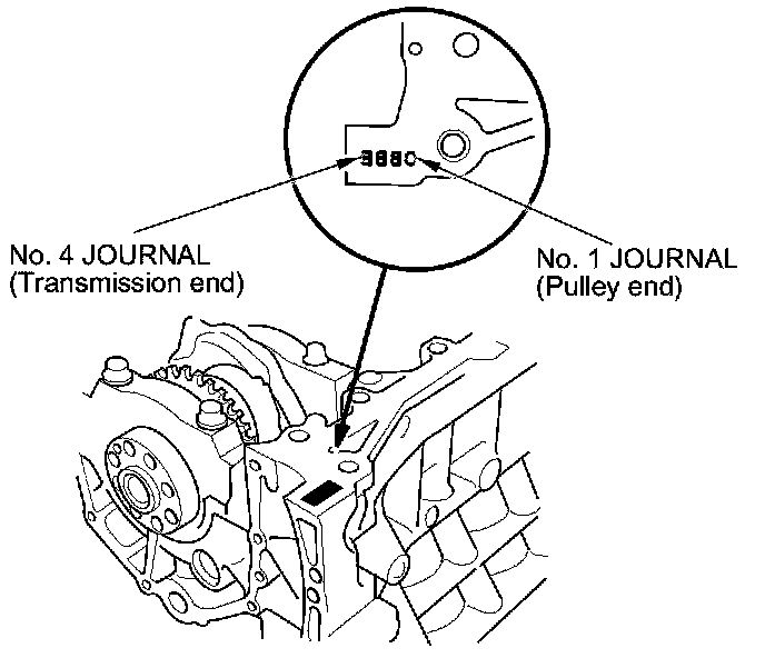 Letters or bars have been stamped on the end of the engine block as a code for the size of each of the four main journal bores.