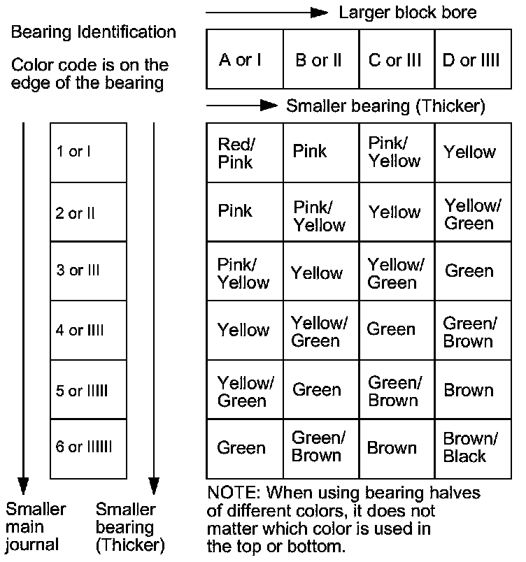 Use them, and the numbers stamped on the crankshaft (codes for main journal size), to choose the correct bearings. If the codes are indecipherable because of an accumulation of dirt and dust, do not scrub them with a wire brush or scraper. Clean them only with solvent or detergent.