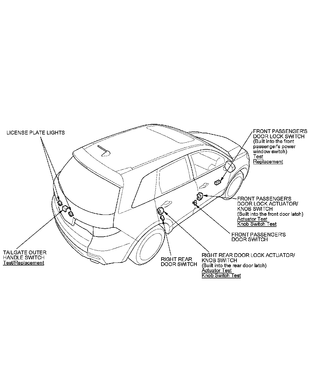 Keyless/Power Door Locks/Security System Component Location Index