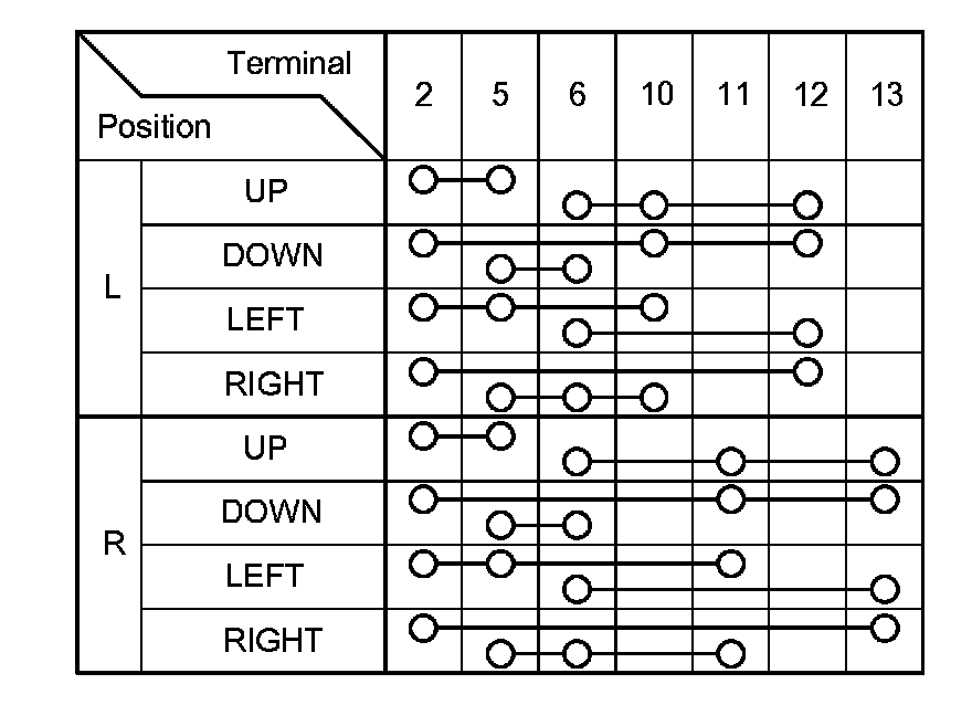 3. Check for continuity between the terminals in each switch position according to the table.