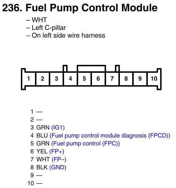 View 236 - Fuel Pump Control Module Connector View