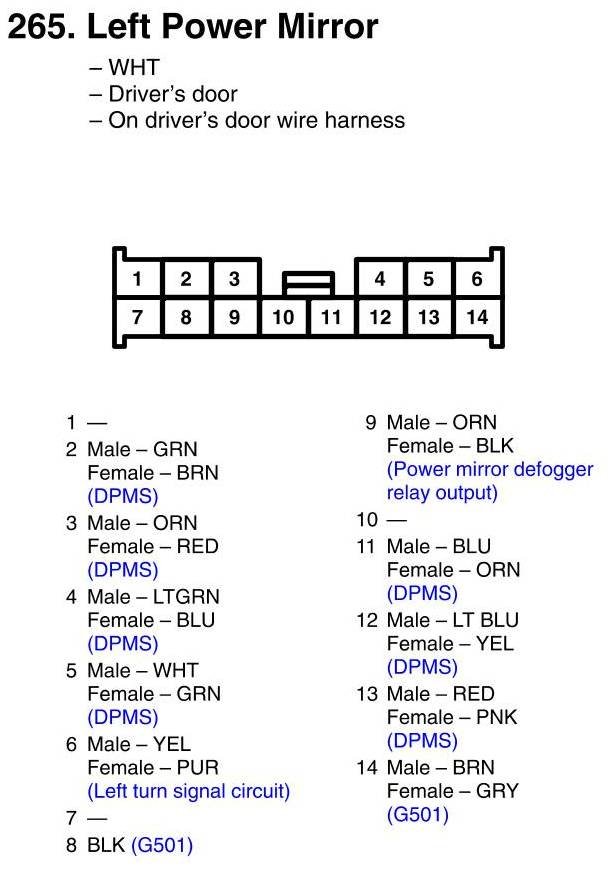 View 265 - Left Power Mirror Connector View