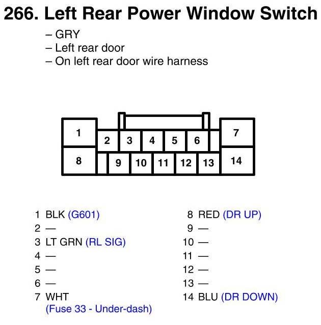Left Rear Power Window Switch Connector View