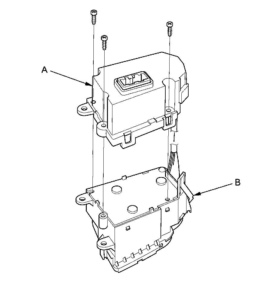 2. Remove the screws and cover (A) from the driver's climate control switch (B).
