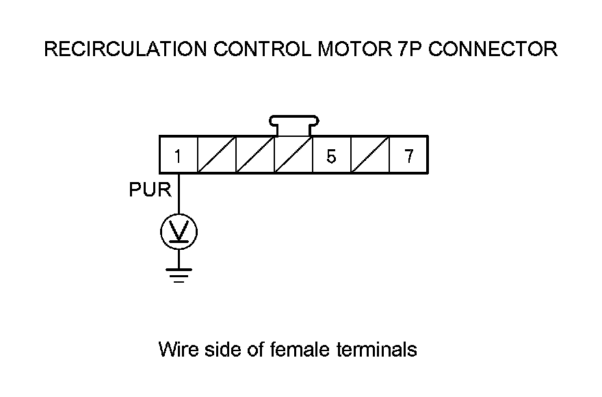 4. Measure the voltage between recirculation control motor 7P connector terminal No. 1 and body ground.