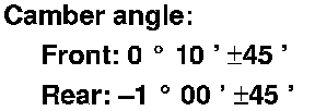 - If the measurement for the front camber is outside the specification, go to front camber adjustment.