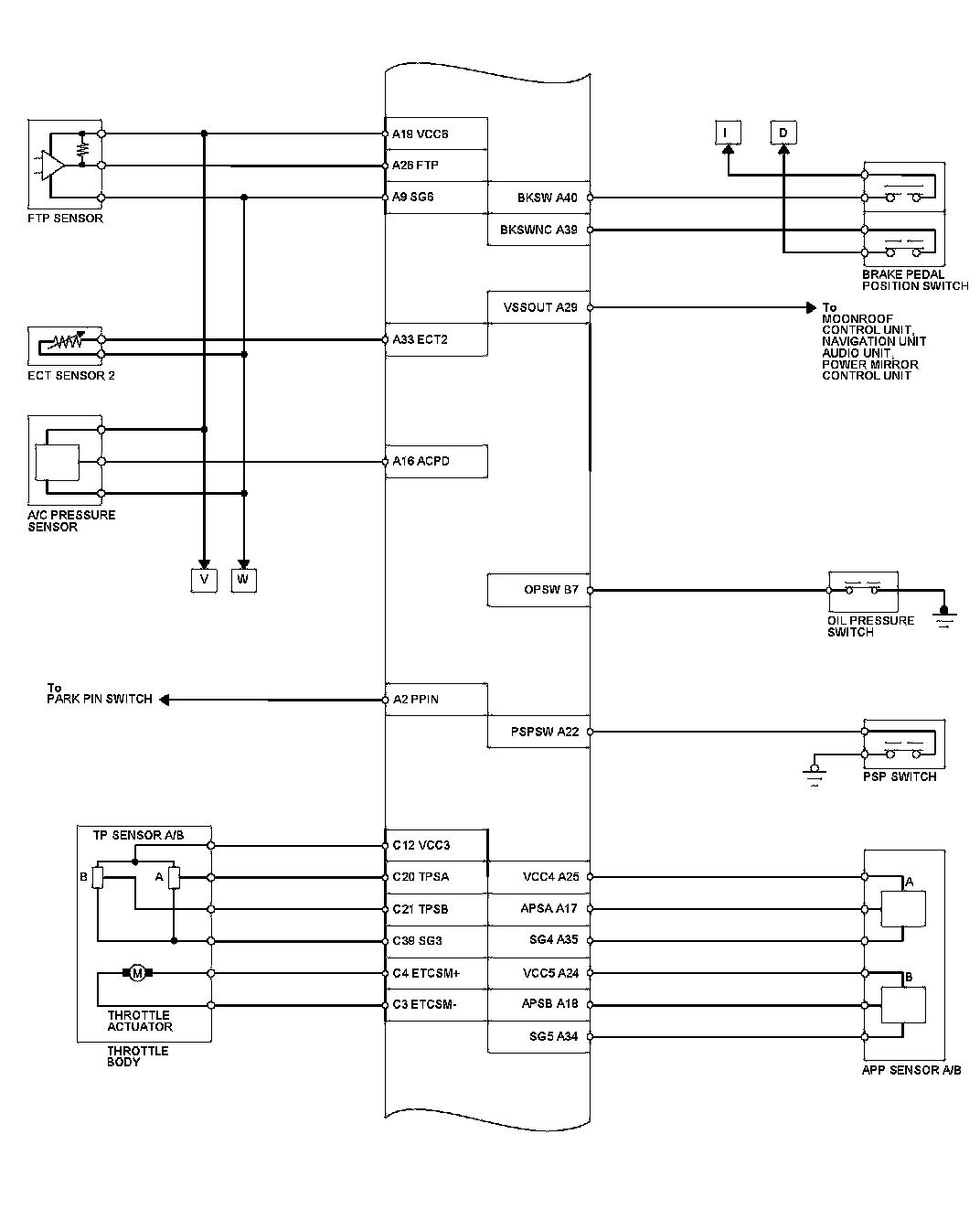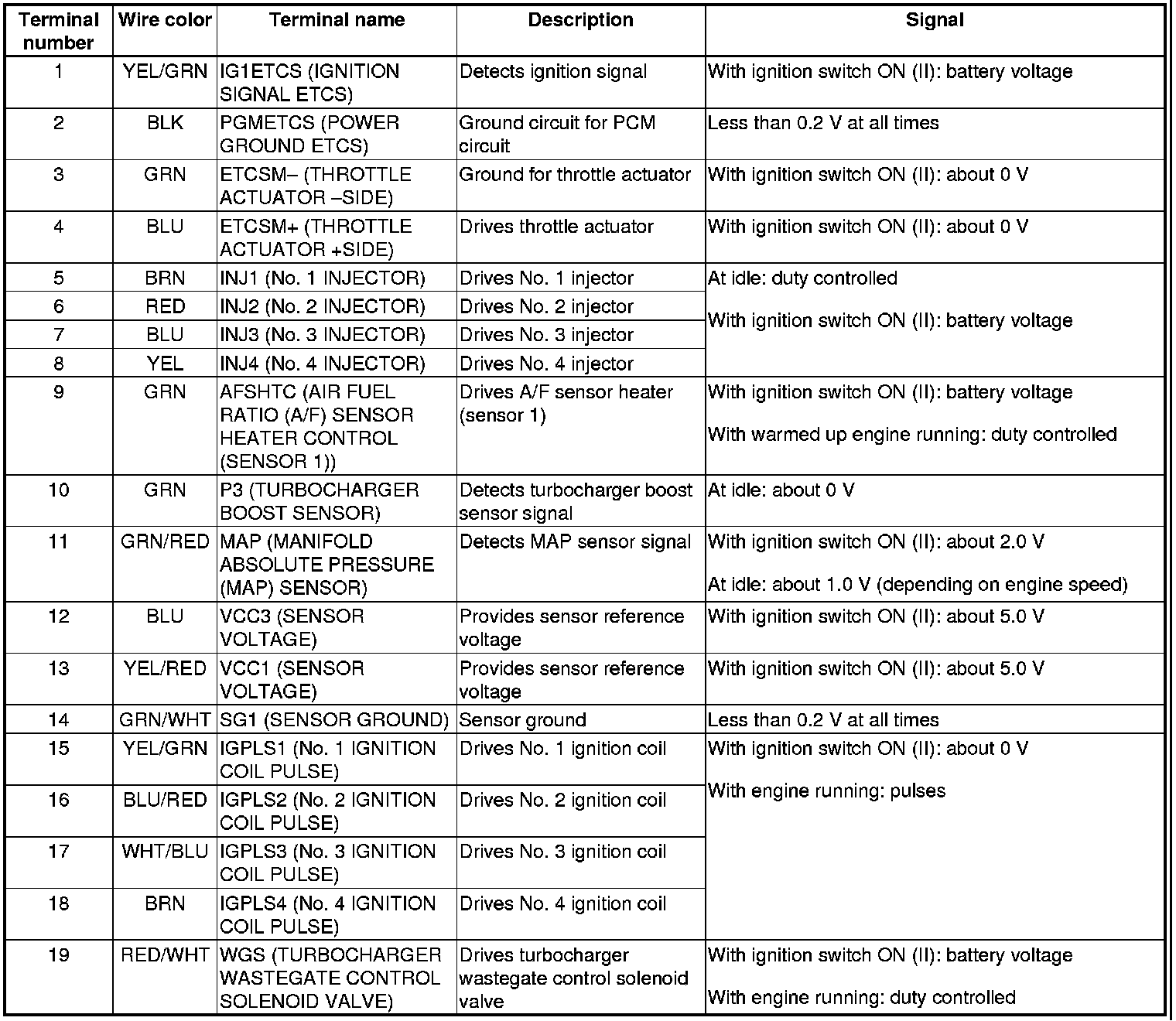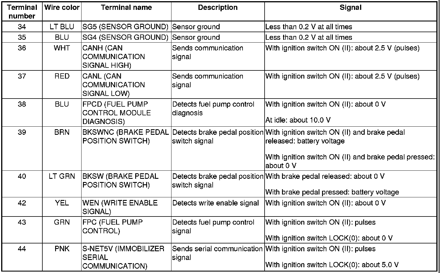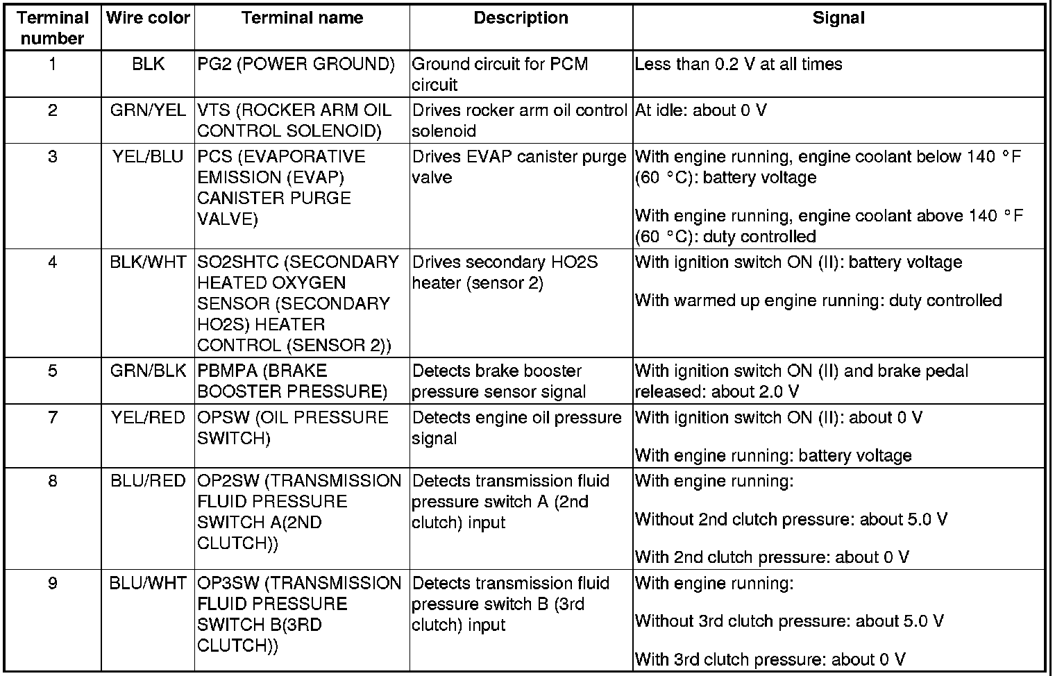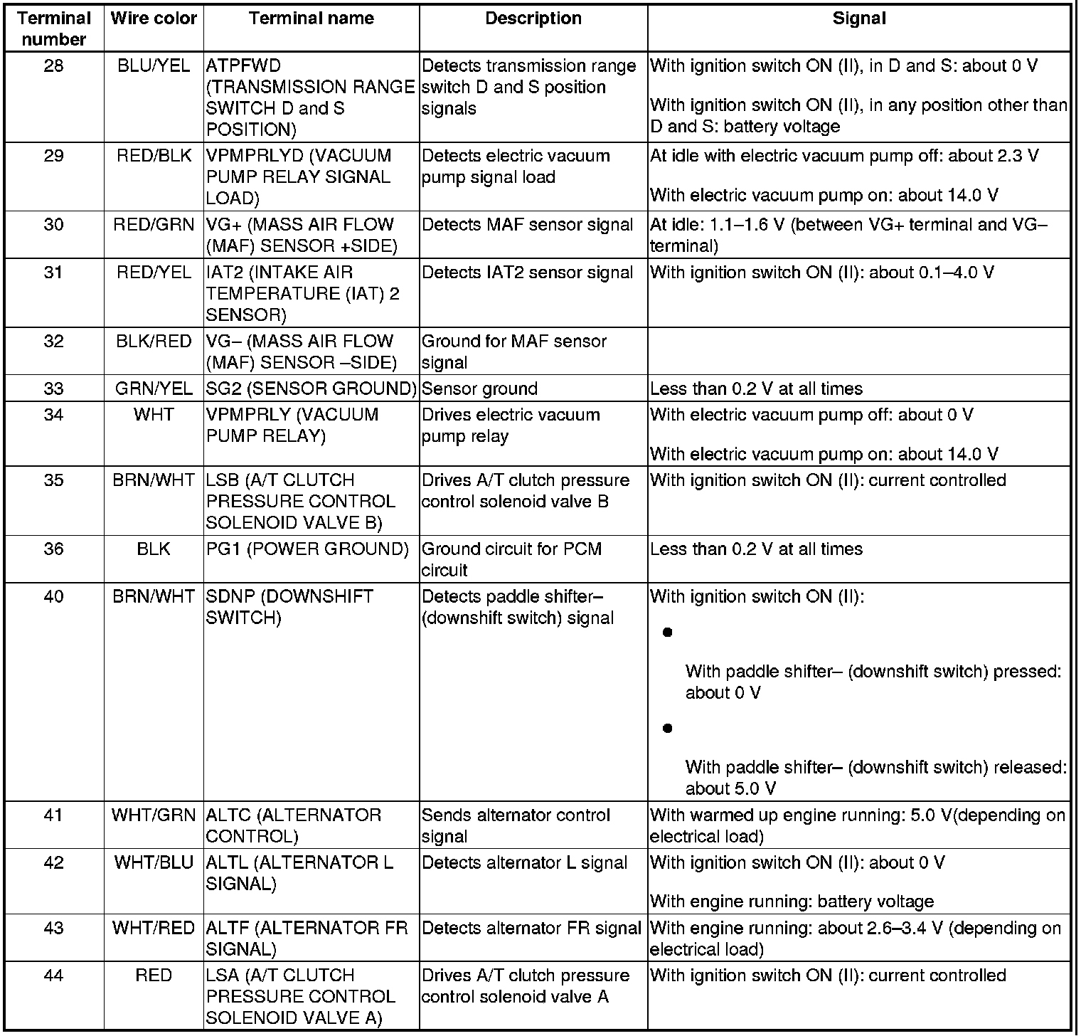 PCM Inputs and Outputs at PCM Connector C (Circle) (44P)