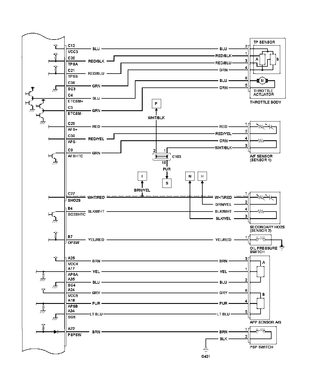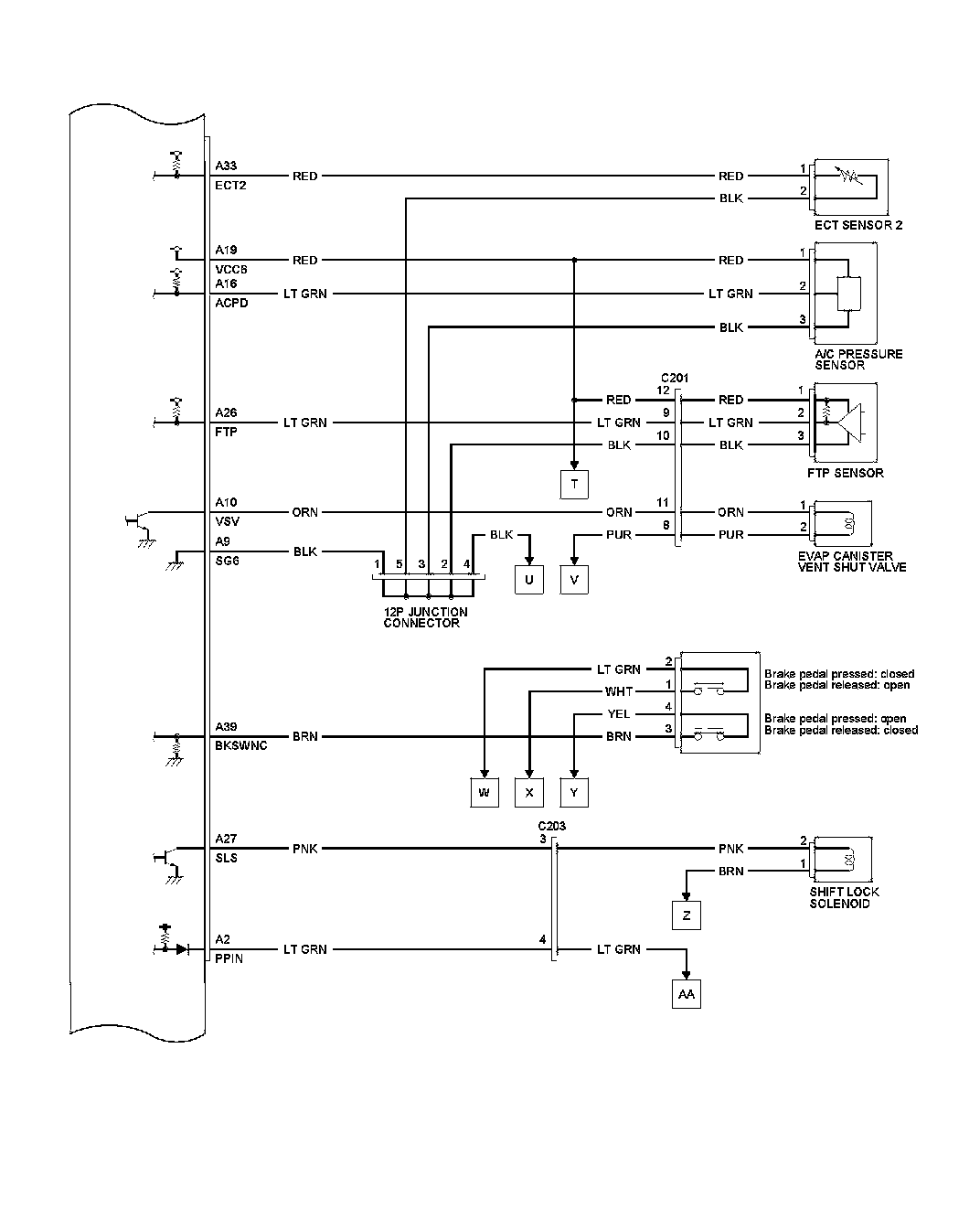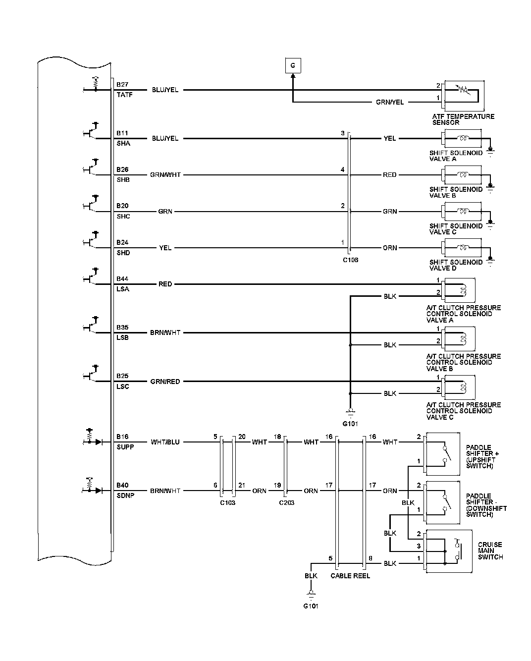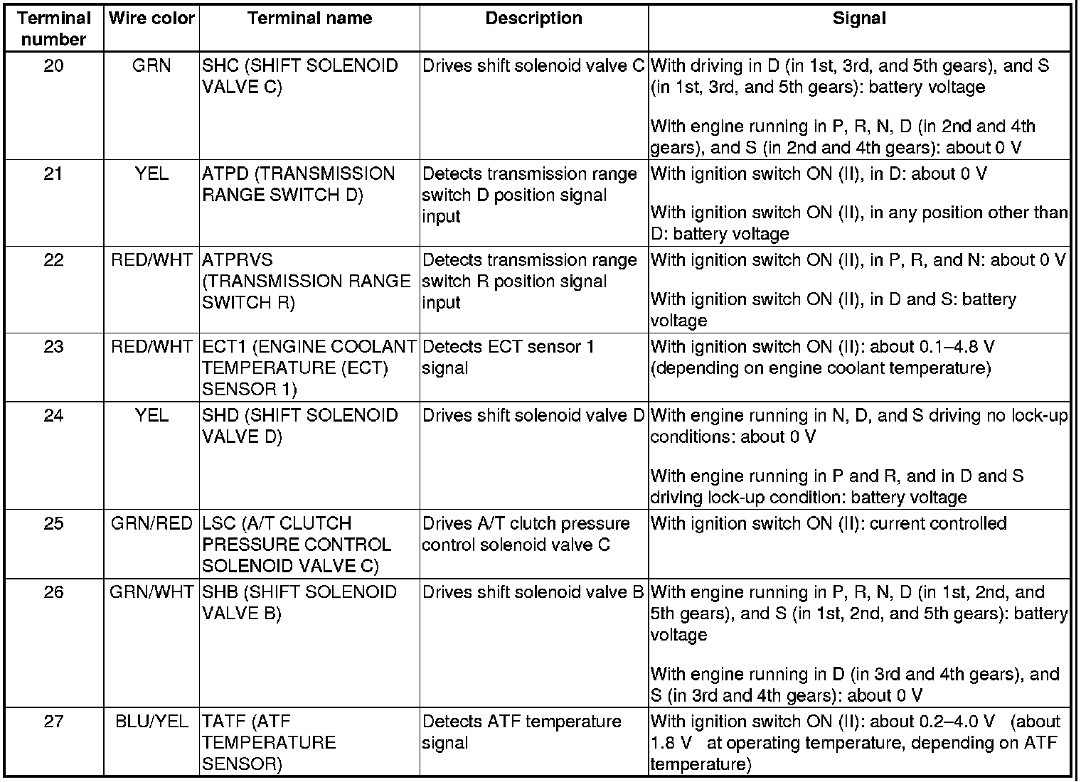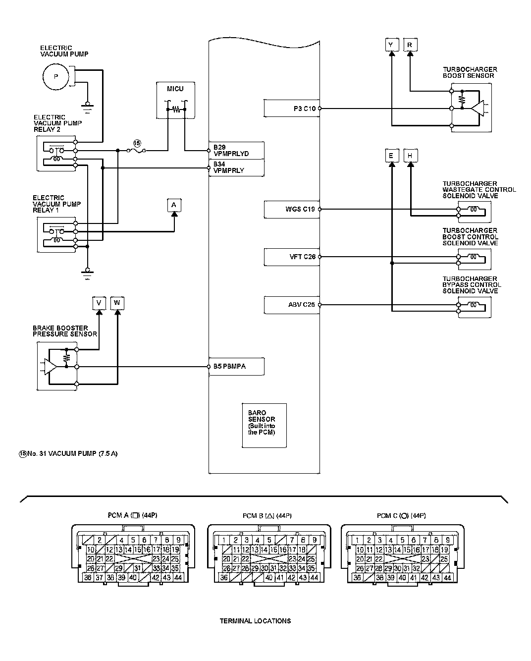 PCM Inputs and Outputs at PCM Connector C (Circle) (44P)