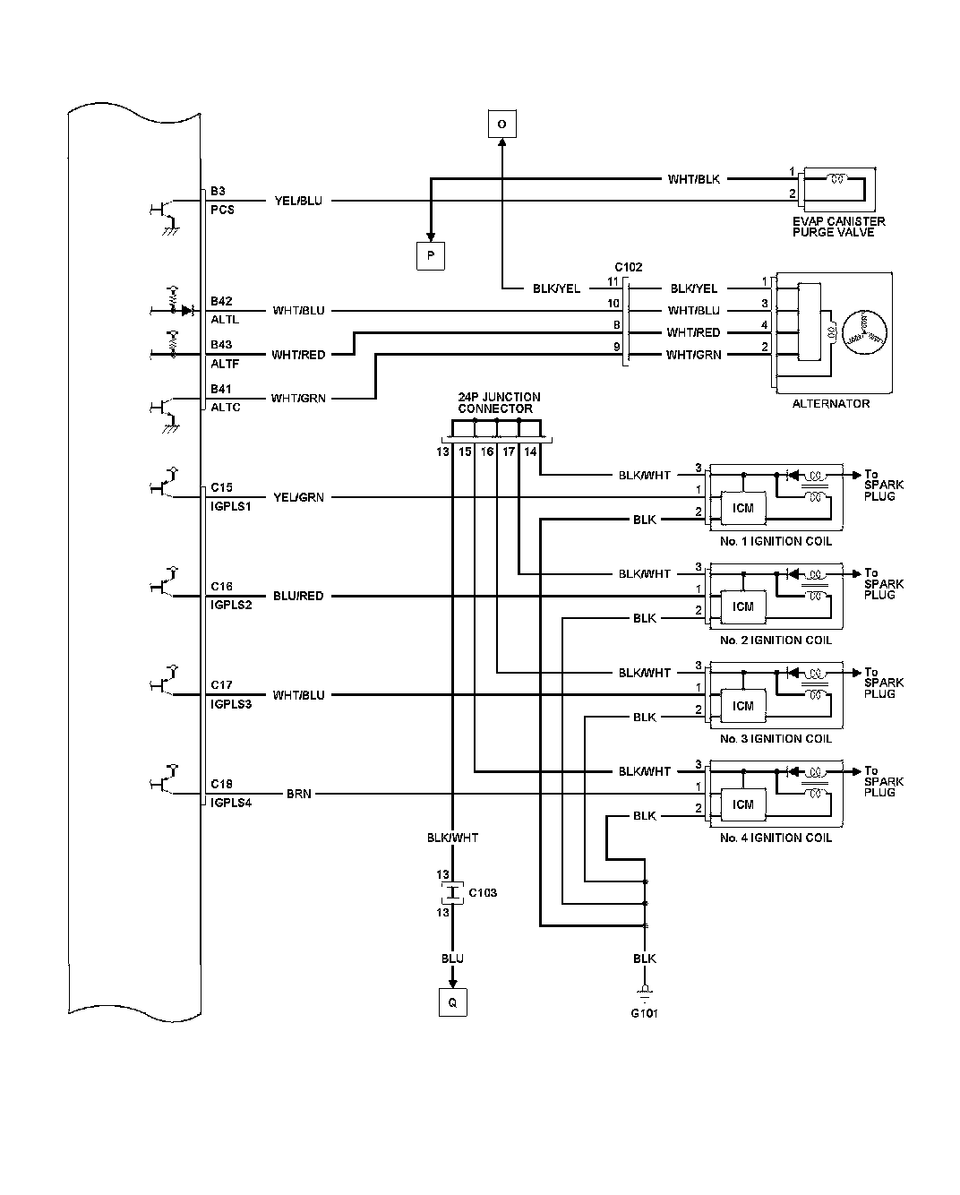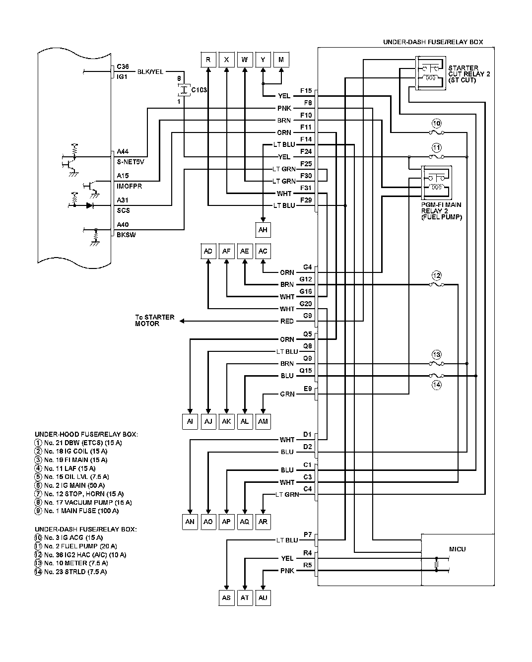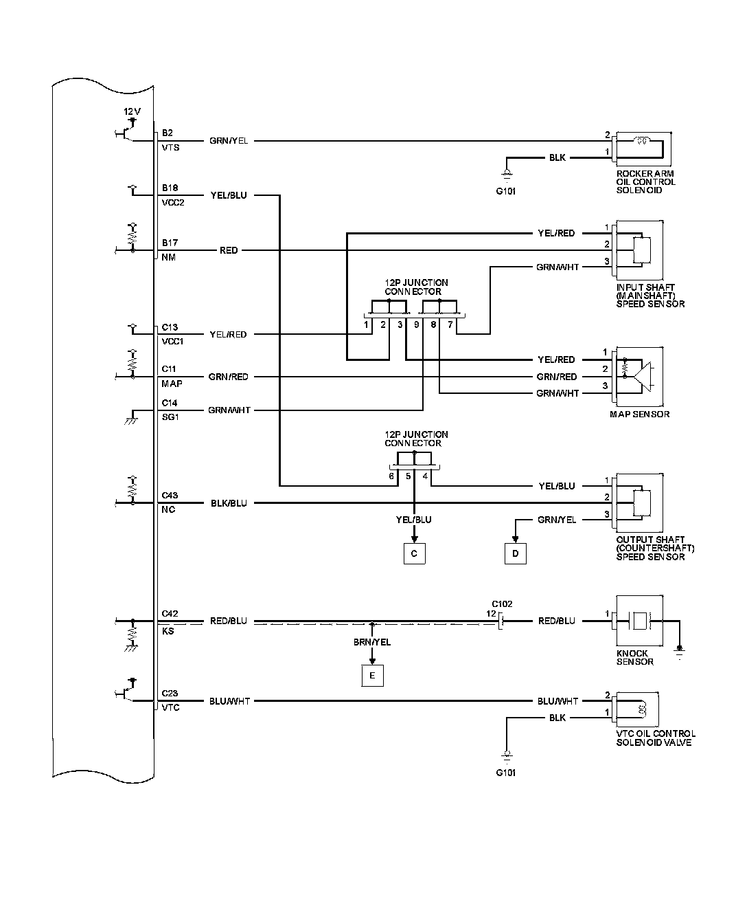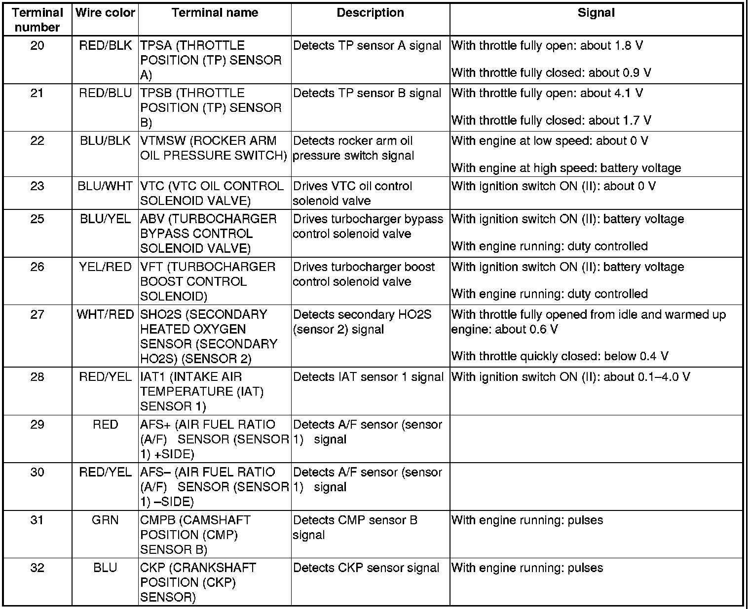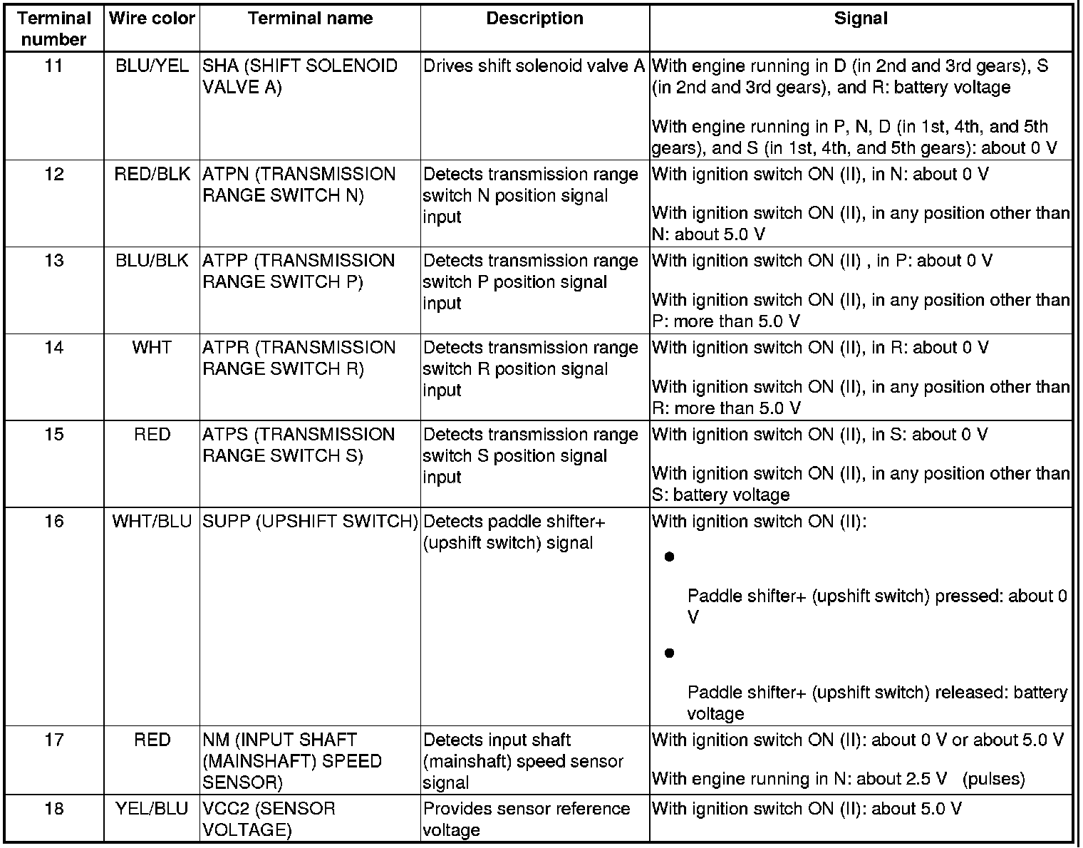 PCM Inputs and Outputs at PCM Connector C (Circle) (44P)