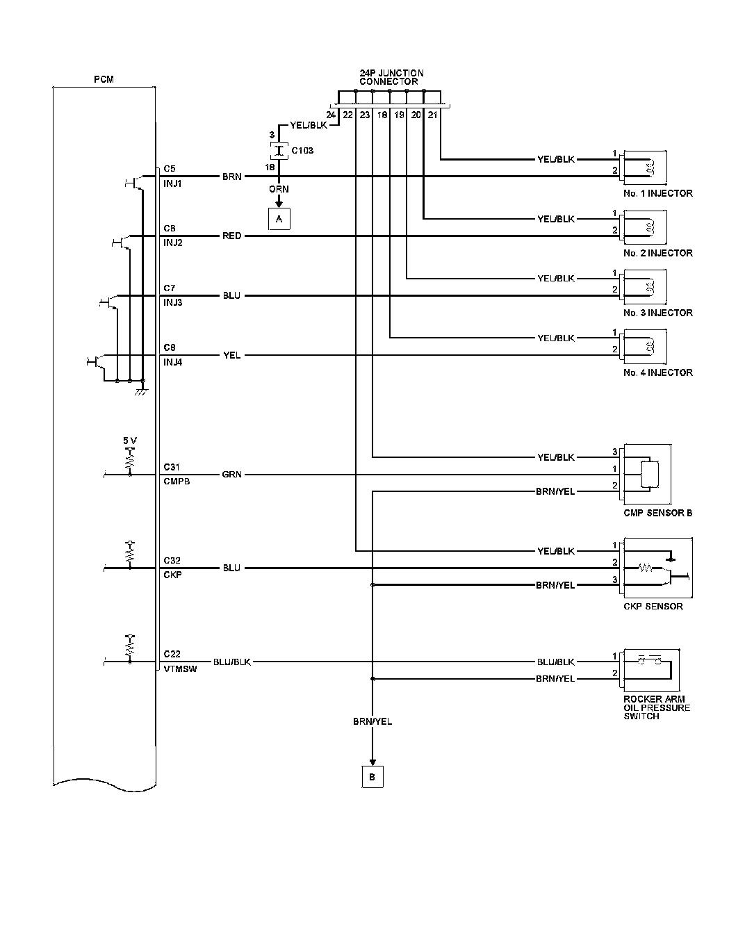 PCM Inputs and Outputs at PCM Connector B (Triangle) (44P)
