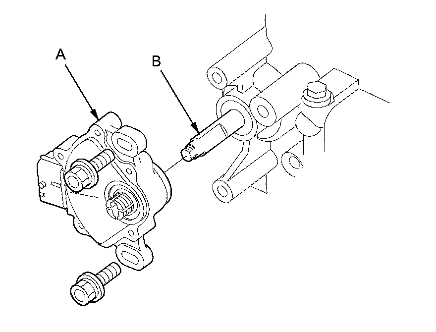 13. Install the transmission range switch (A) gently over the selector control shaft (B), and install the bolts loosely.