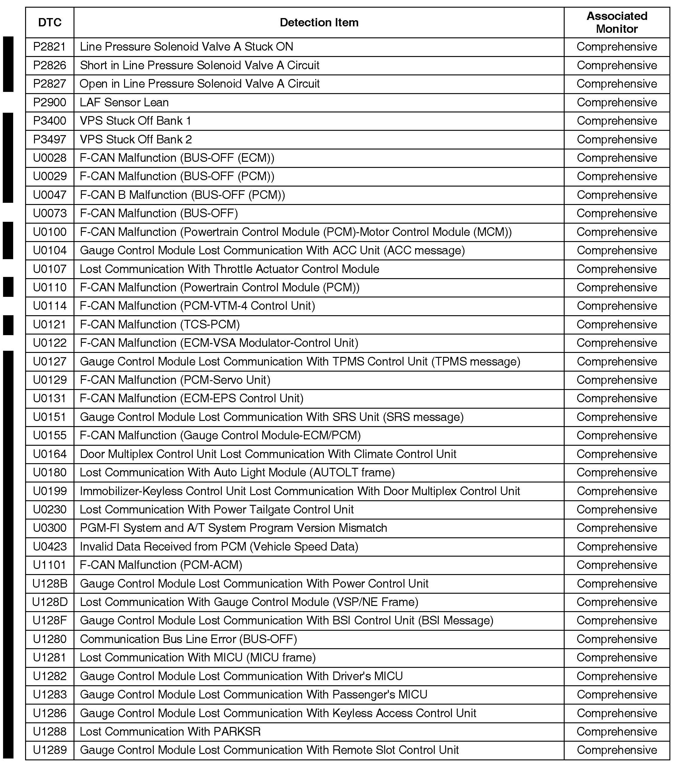 Following is a list of all OBD II DTCs and their associated monitors for all Acuras with OBD II. No one model has every DTC in the list.