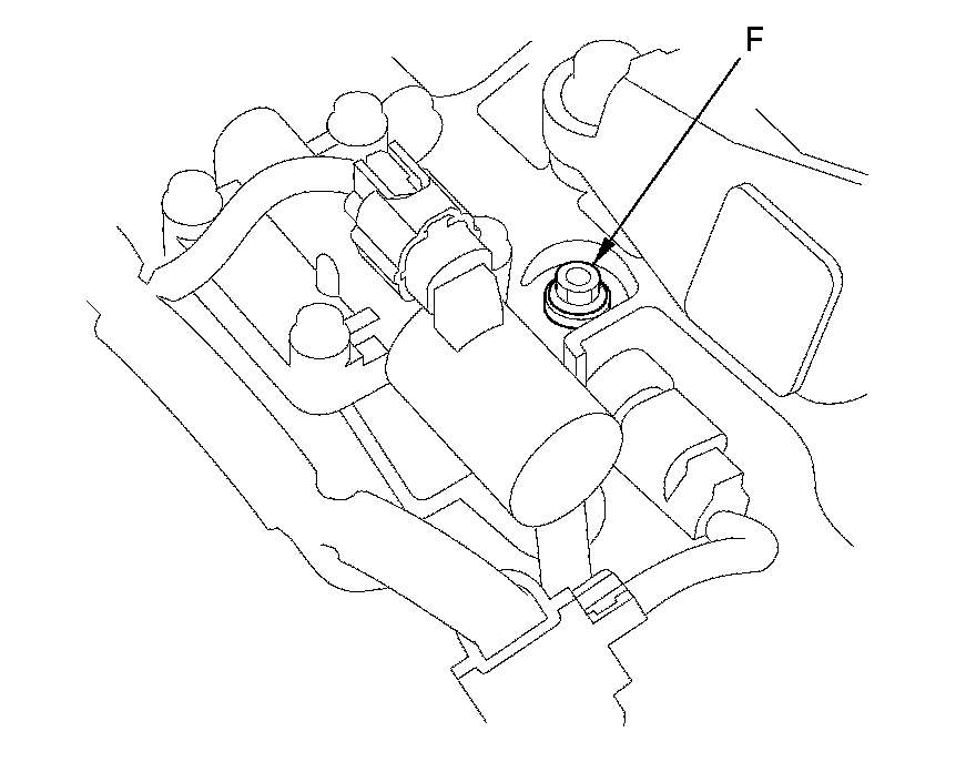 20. Connect the A/T oil pressure gauge to the 4th clutch pressure inspection port (F).