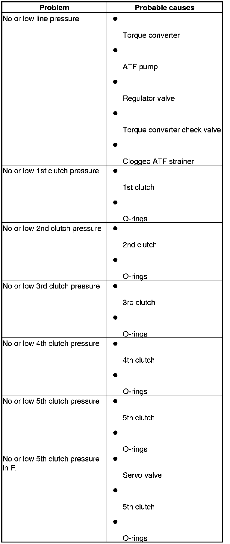 29. If any of the pressures are out of the service limit, refer to the problems and probable causes listed in the table.