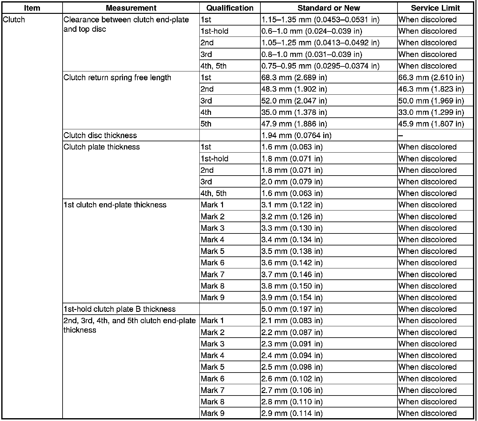 Clutch Specification(s)