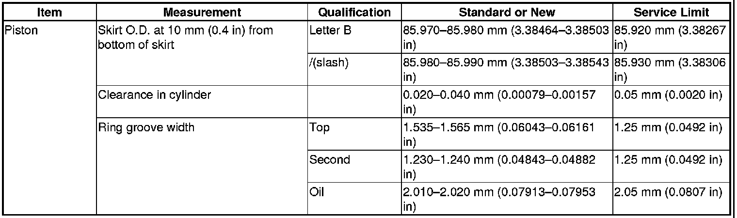 Piston Specification(s)